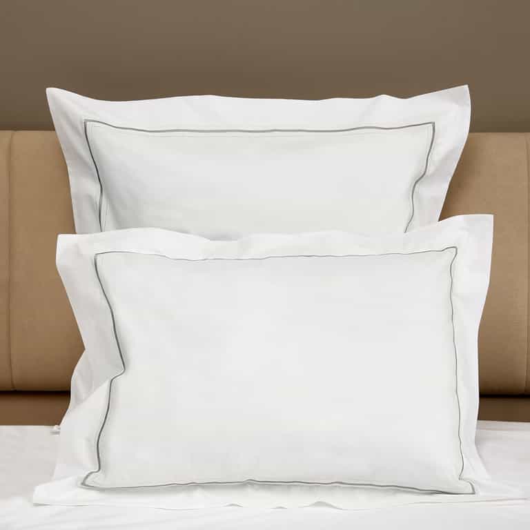 Gramercy Sham showcases 100% long-staple cotton percale with a crisp, soft feel and a 400 thread count, accented by double hemstitch and an embroidered line for subtle texture. Made in Italy, this versatile sham complements a range of colors and bedding styles for timeless sophistication.