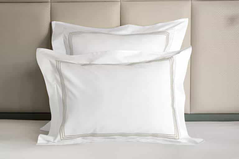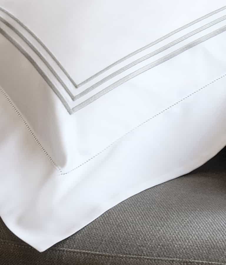 The Granduca Sham blends high-quality long-staple Supima cotton with Tuscan craftsmanship. A refined hemstitch and three embroidered lines meet the Nuvola Percale 600 fabric, delivering a soft, silky feel with breathable, crisp texture. Made in Italy.
