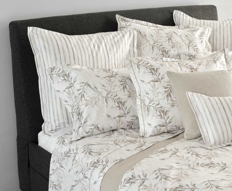 The Natura Sham adds quiet luxury to the bed with a watercolor print on soft, durable and breathable 100% extra-long-staple cotton sateen. It features a subtle embroidery along the 1-inch flange and a 300 thread count for a smooth finish, with Made in Italy craftsmanship bringing lasting quality to a natural-inspired look.
