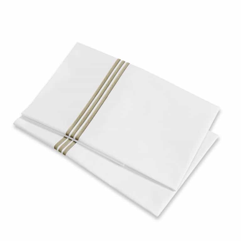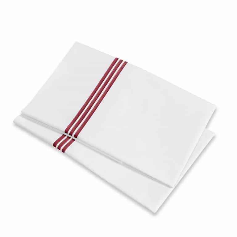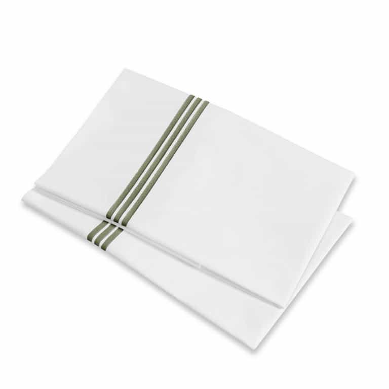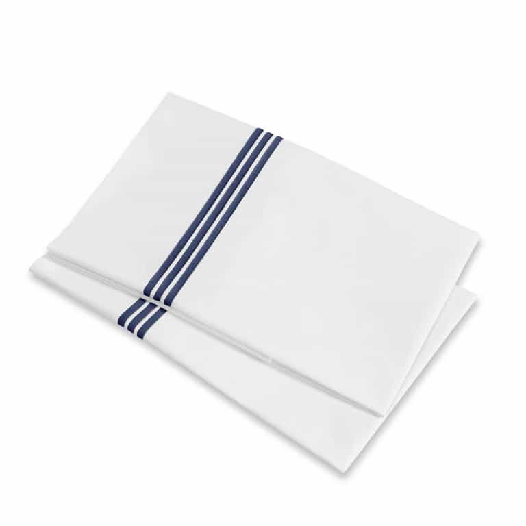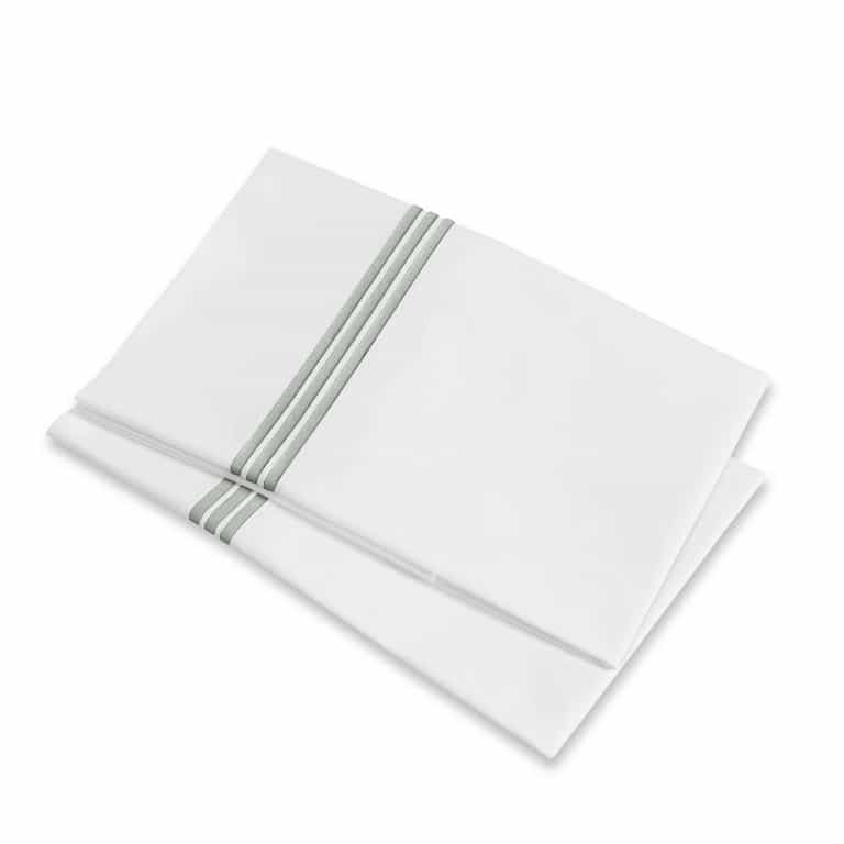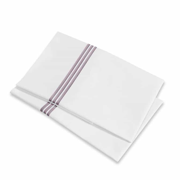 The Platinum Pillowcases feature a timeless look with a crisp, high-quality fabric and three embroidered lines. Made in Italy from long-staple cotton percale, they offer a smooth, durable feel. The embroidered lines come in more than 20 colors, and the set includes two pillowcases.
