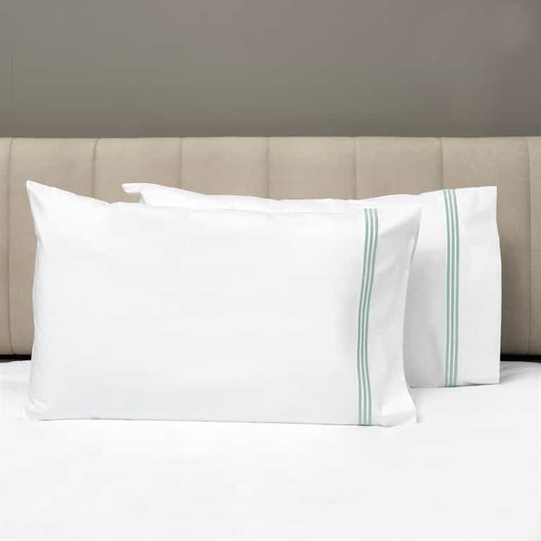 The Platinum Pillowcases offer a timeless, refined look with crisp percale fabric and three embroidered lines in over 20 colors. Made in Italy from 100% long-staple cotton percale, they deliver a smooth, durable feel and the set includes two pillowcases.