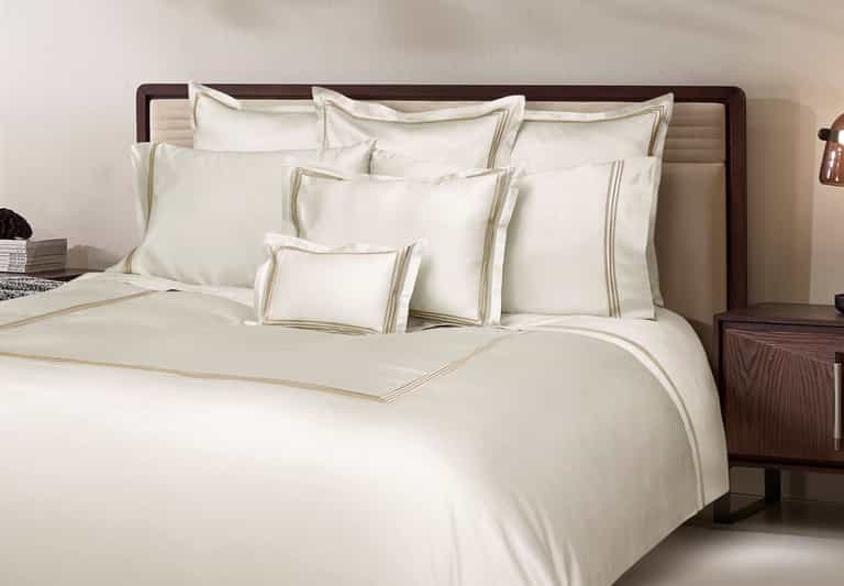 The Platinum Sateen Flat Sheet blends elegant simplicity with a contemporary touch through colorful lines, crafted in Italy from Signoria long-staple cotton in a smooth 300-thread-count sateen finish. Colors are chosen to match the Raffaello collection, delivering a refined look that elevates any bedroom.