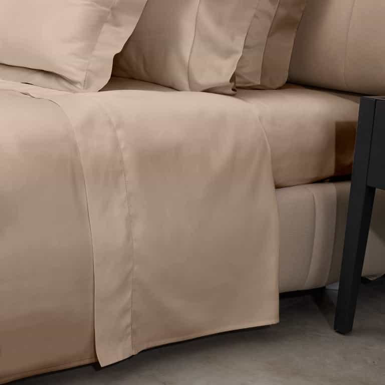 The Raffaello Sheet Set delivers a silky feel from 100% long-staple cotton in a 300 thread count sateen. Made in Italy, the fabric is completely dyed in Italy, offering durability and a refined look that catches light with depth.