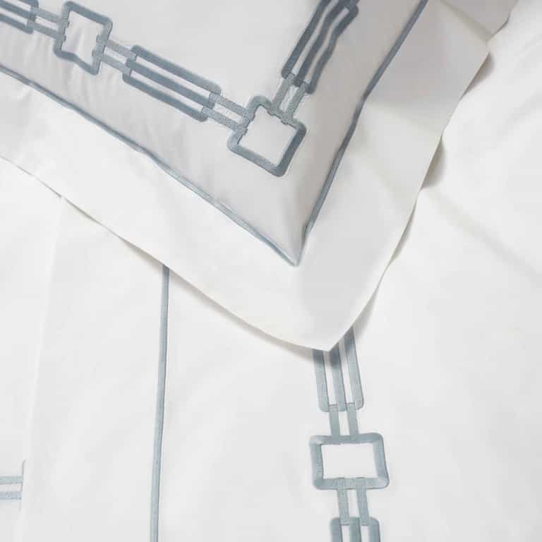 The Retrò Flat Sheet blends luxury with everyday practicality, featuring embroidery on a white cotton percale background and a 600-thread-count weave from long-staple cotton for a crisp, soft feel. Made in Italy, this white ground offers a clean, timeless look that elevates any bedding.