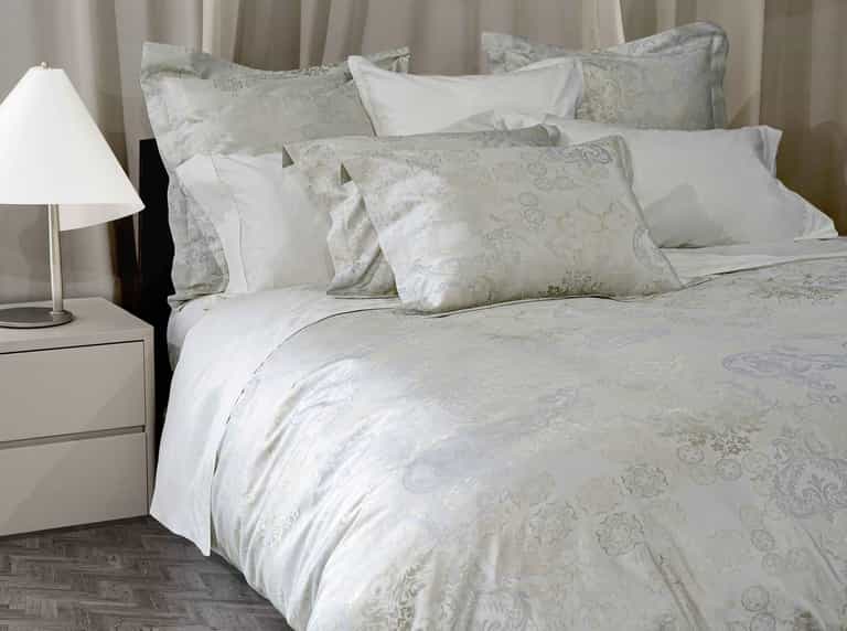 The Torcello Sham blends timeless elegance with a soft, refined feel, featuring a subtle weave created by the colored weft crossing the warp for a luxurious look. Crafted from 100% extra long-staple cotton, it uses yarn-dyed jacquard with a 500 thread count and finishes with four 2-inch flanges in a simple hem, made in Italy.
