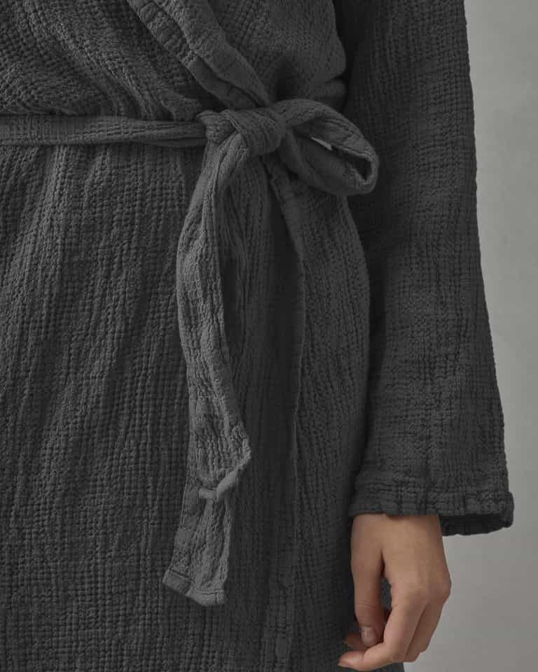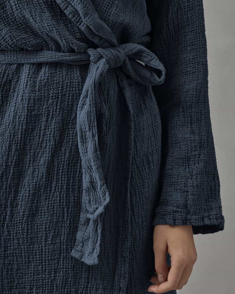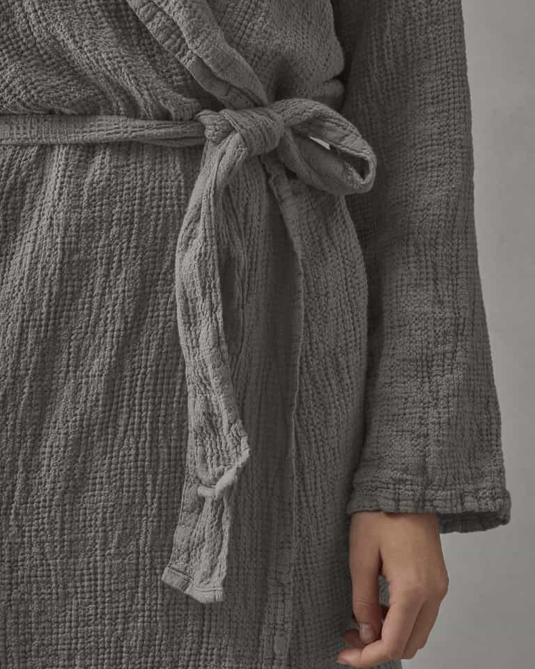 The Lipe bathrobe combines a practical shawl collar with a light, breathable waffle weave for everyday comfort and easy care.