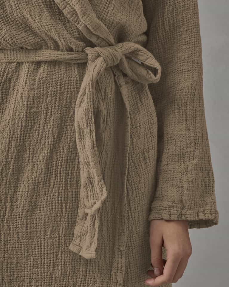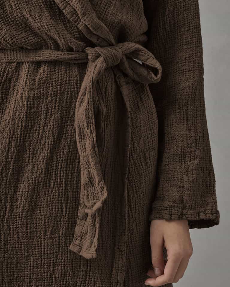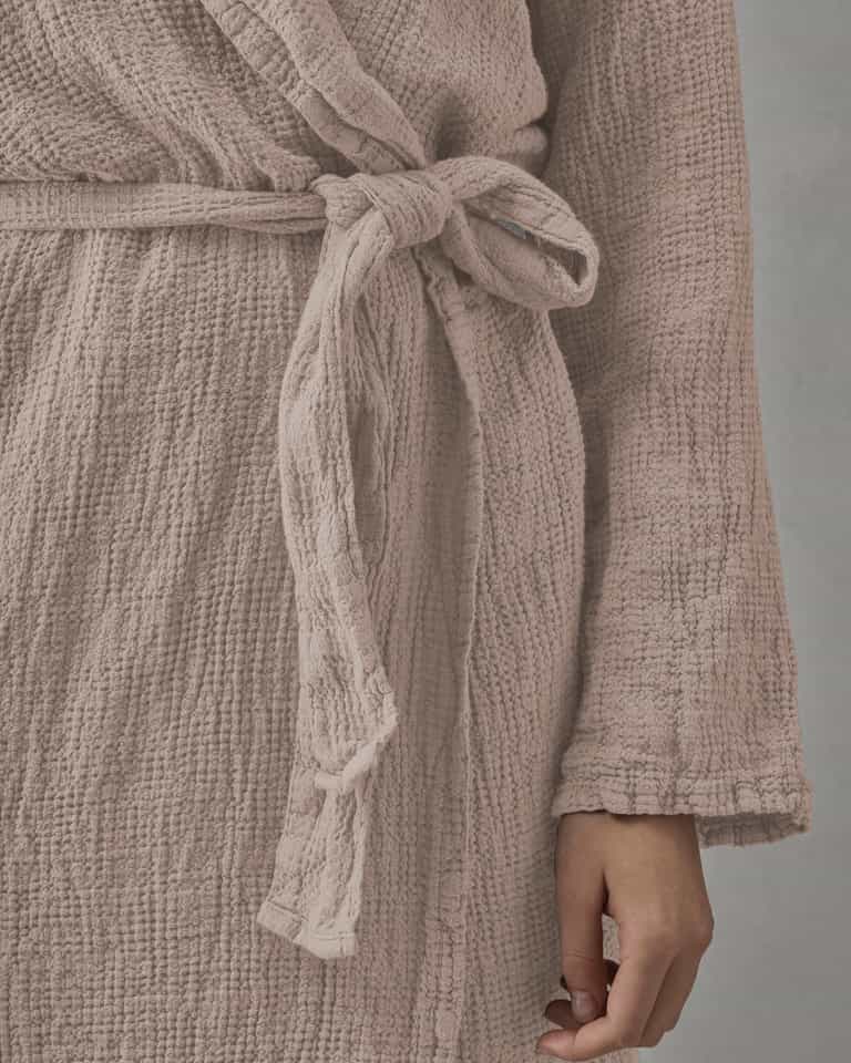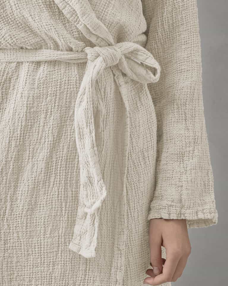 The Lipe bathrobe blends a practical shawl collar with a light, breathable waffle weave for everyday comfort and easy care. Made from 100% linen, it is gentle on skin, breathable and quick-drying, durable for daily lounging, and offers a relaxed fit for effortless wear around the house.