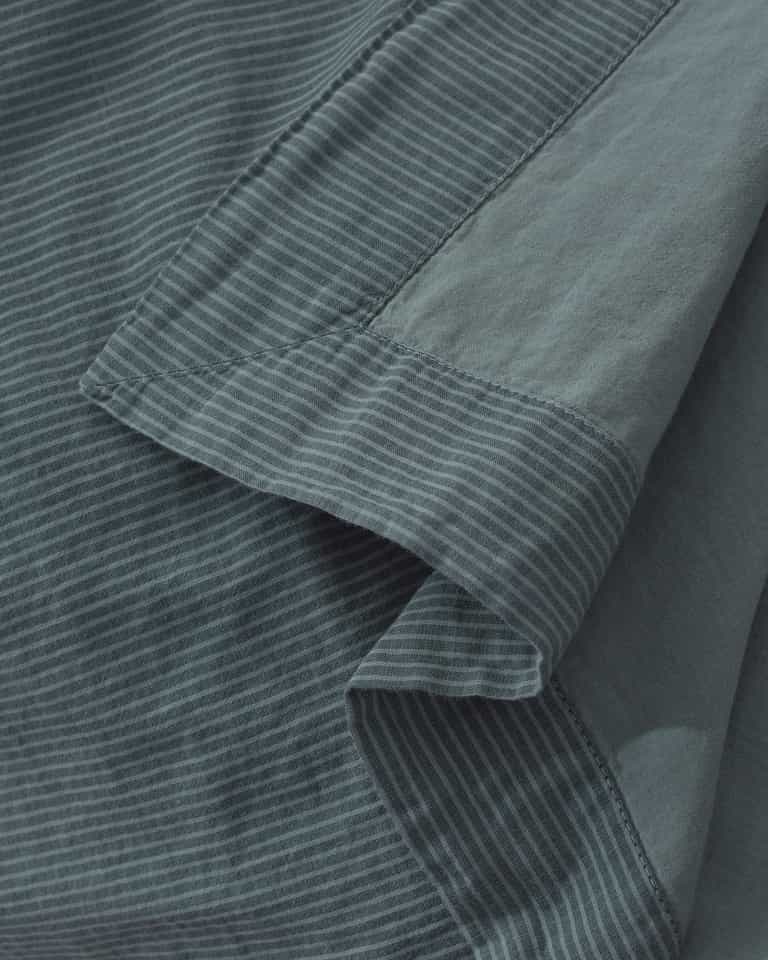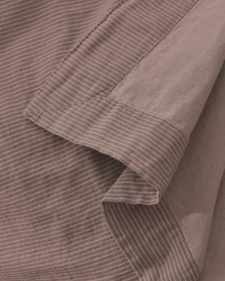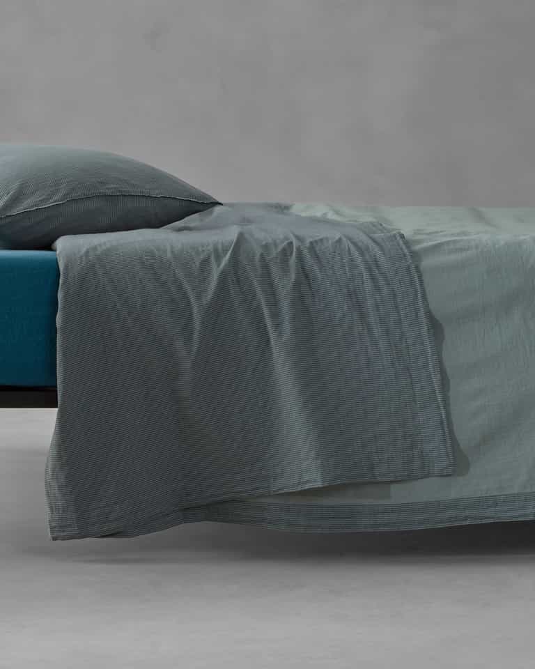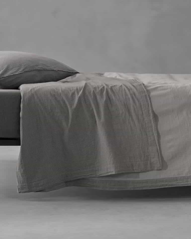 Barre Flat Sheet features a jacquard striped pattern and double-layer cotton voile for a soft, breathable finish. Made from 100% cotton, it delivers a refined yet cozy look that blends easily with solid colors for versatile bedroom styling.