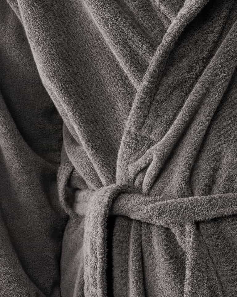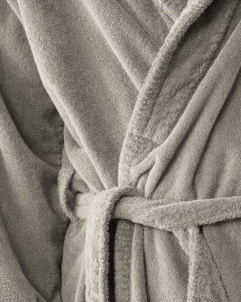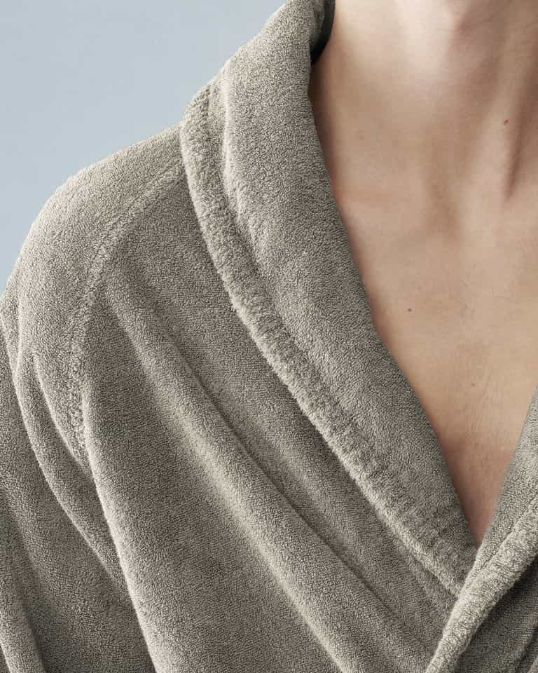 The Crisp Bathrobe by Society Limonta features a special shawl collar and a fresh take on a terry cloth bathrobe. Crafted with a manufacturing process that makes the fabric dense as velvet, yet highly absorbent and light. The robe is soft on the skin, dries quickly, and is machine washable. Available in seasonal colors. Garment dyed to enhance fabric quality and create a unique color tone each time.