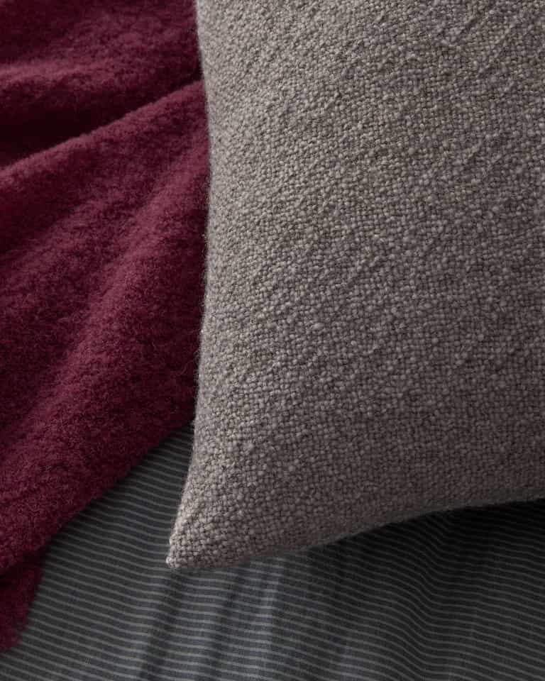 The Des Cushion enhances any living space with its stylish touch, featuring a unique garment-dyed color process for one-of-a-kind shades. Crafted from mélange wool, it offers a cozy, warm feel, while its neutral tones easily blend with any decor, creating a welcoming atmosphere for your home.