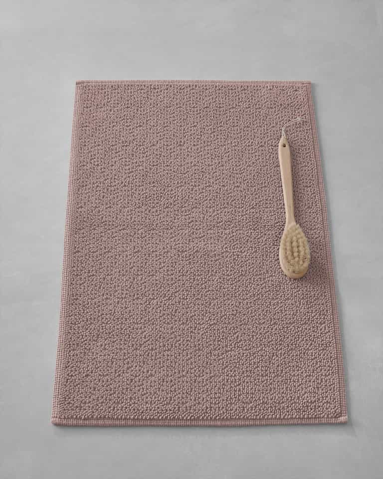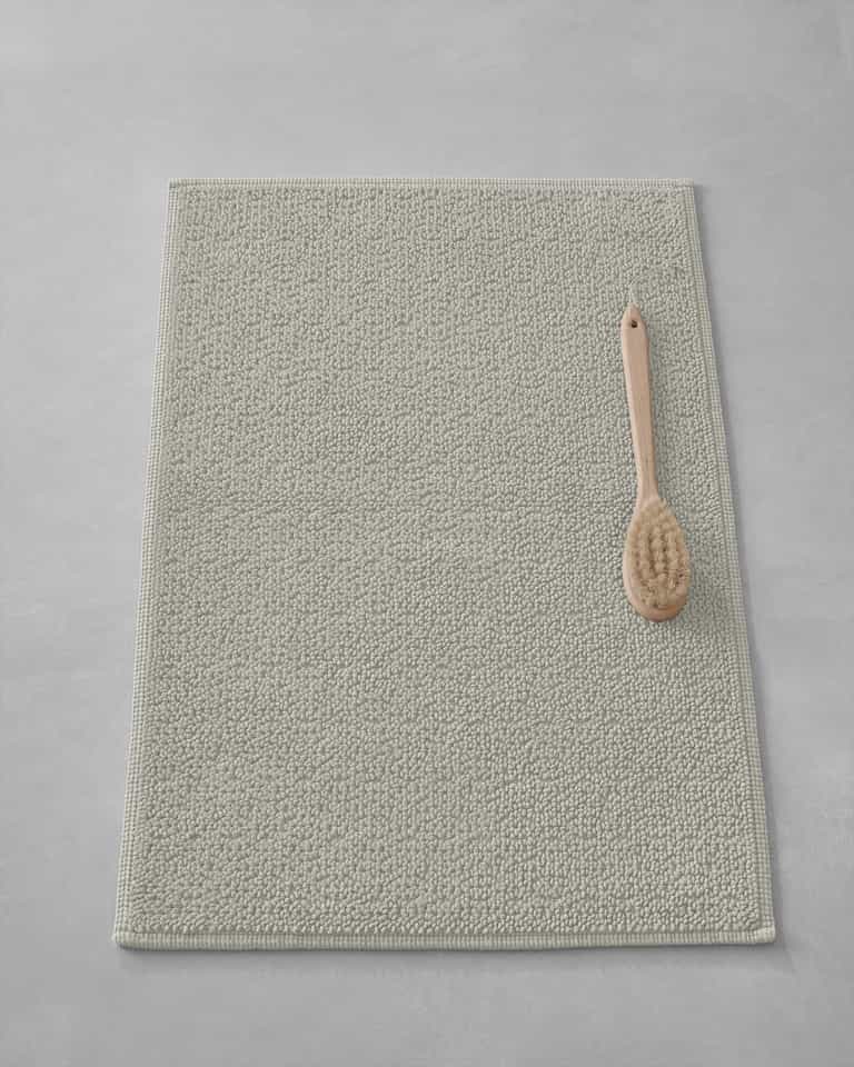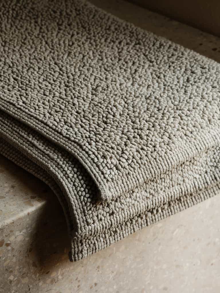 The Doux Bath Mat is crafted with bouclé cotton, offering a delicate and soft touch to your bathroom. Its rich, tri-dimensional texture blends elegance with practicality for a stylish look.