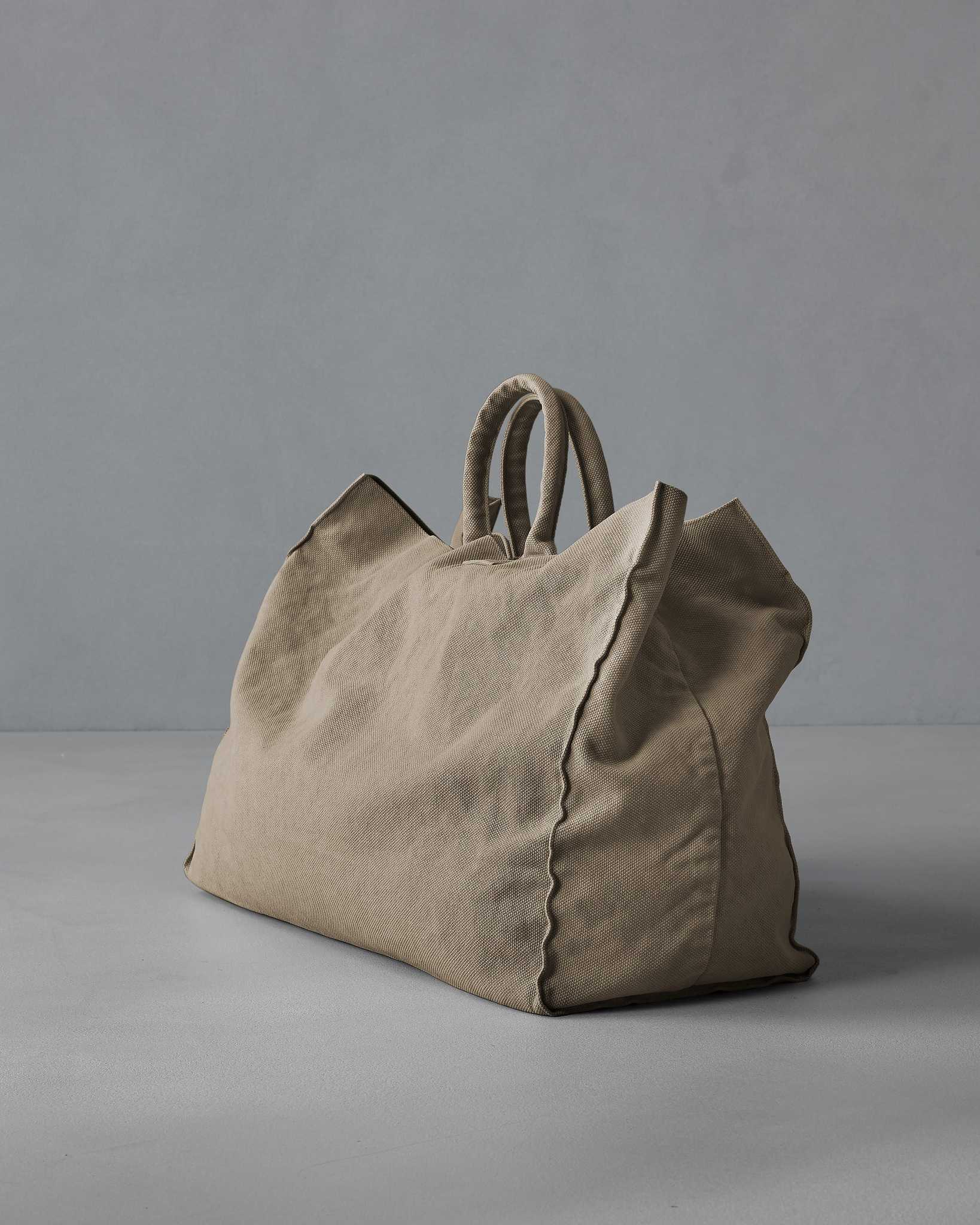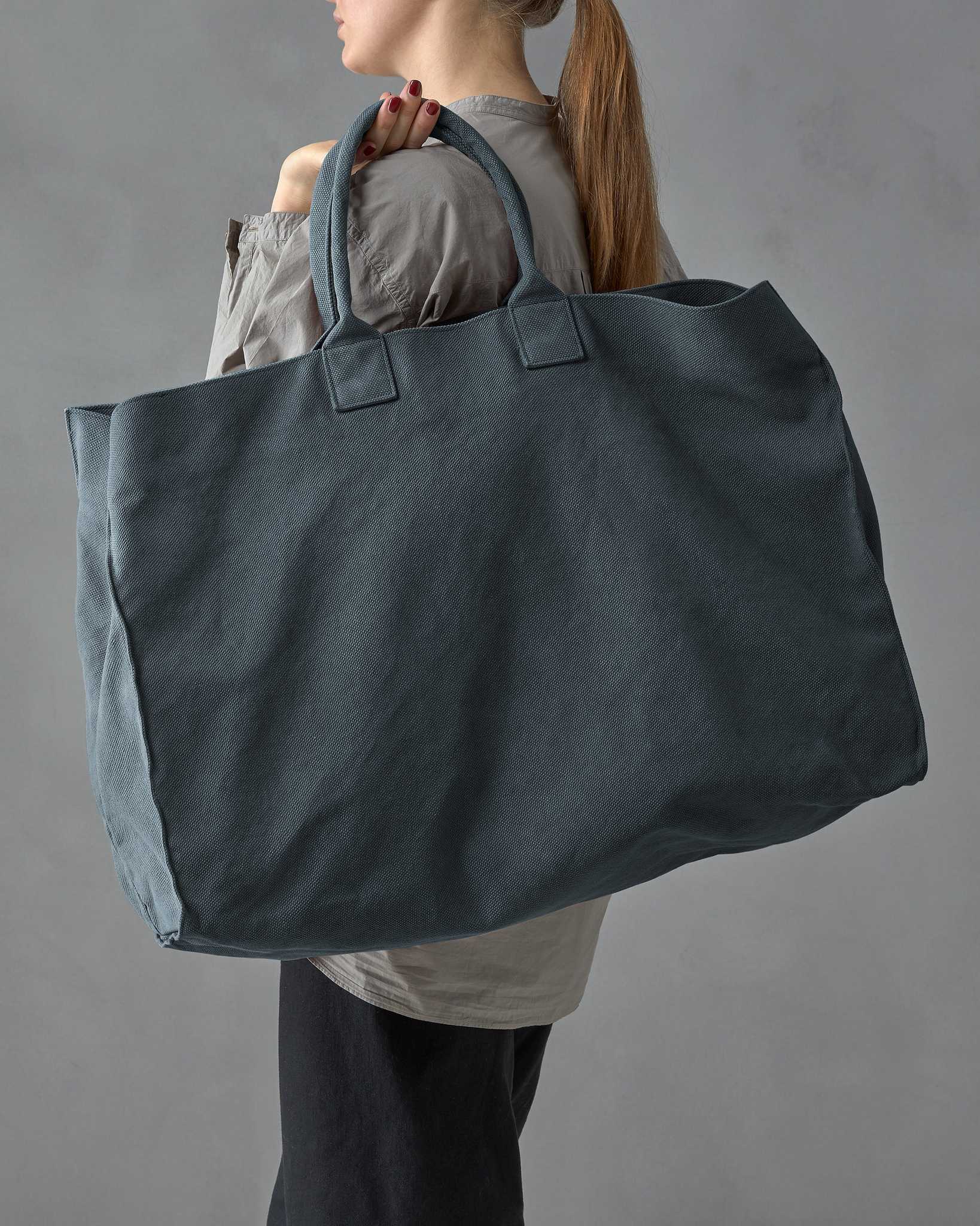 The Drai Bag is a classic large cotton canvas tote from Society Limonta. It offers a spacious, zip-free design that works for the beach, sport, weekends, or storing household linens.