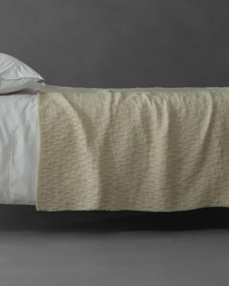 The Layal Bedcover blends a cashmere and silk mix woven in a jacquard pattern that creates geometric shapes and a velvety tone-on-tone effect. Soft and cozy, this blanket adds warmth and a refined touch to the bedroom or living room.