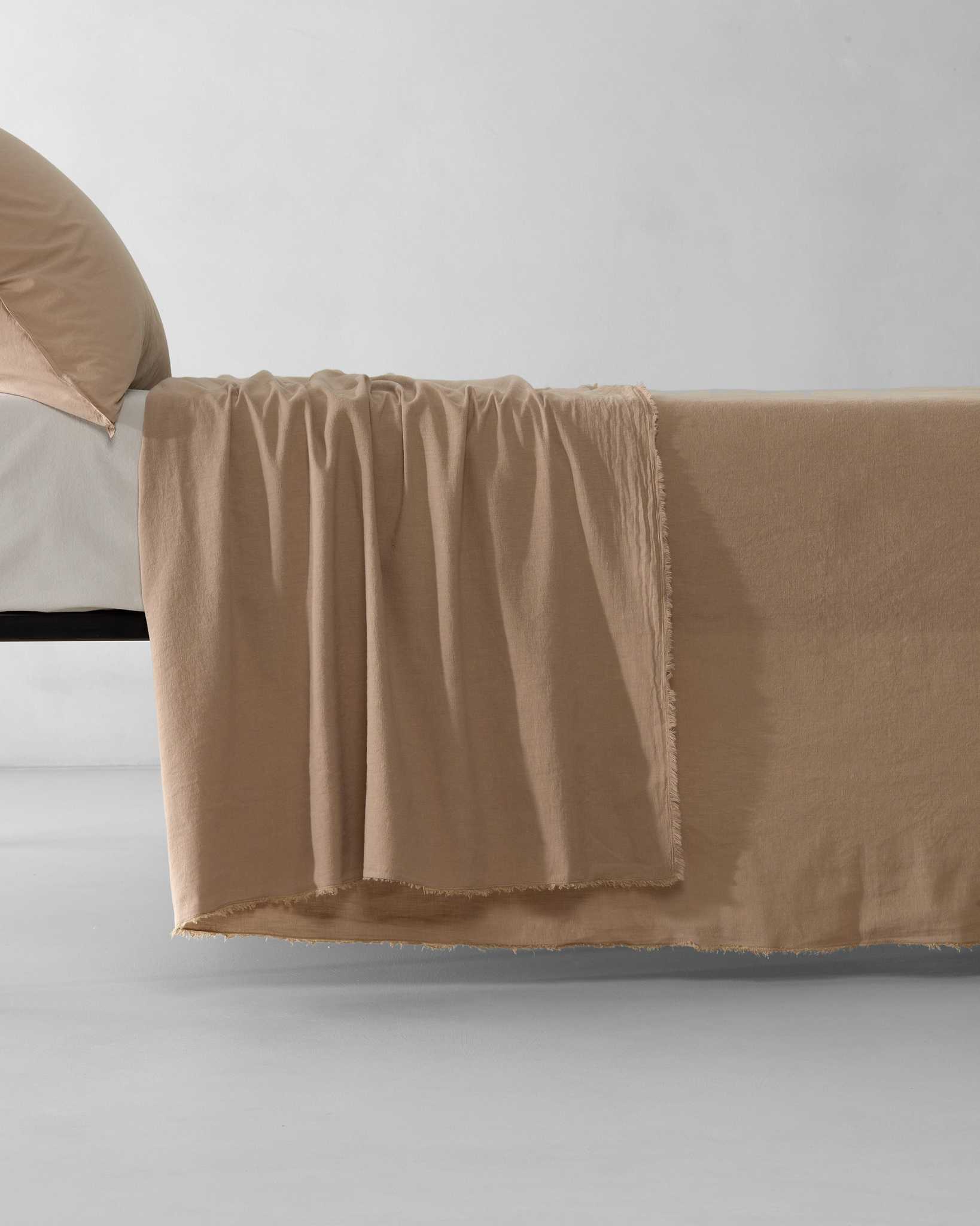 Crafted with a perfect blend of linen and cotton, the Lico Bed Sheet brings comfort and elegance to any bedroom. The frayed edges add a unique touch to its appearance, making it a standout piece.