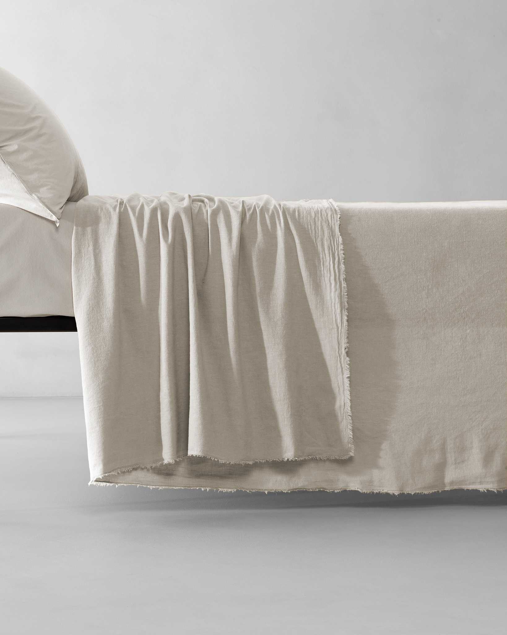 The Lico Bed Sheet is a blend of linen and cotton, offering a soft, smooth texture and an elegant shimmering effect for year-round comfort. Frayed edges and a textured look add sophistication, creating a standout piece for any bedroom decor.