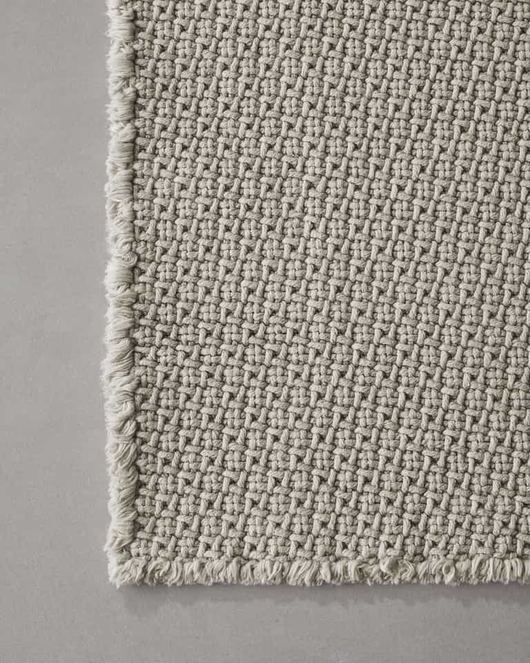 Molto is a small cotton macro-weave rug with fringed edges that fits in kitchens, living rooms, bedrooms, or bathrooms. Made from 100% cotton, it is soft, ultra-absorbent, and ready for everyday use in any room.