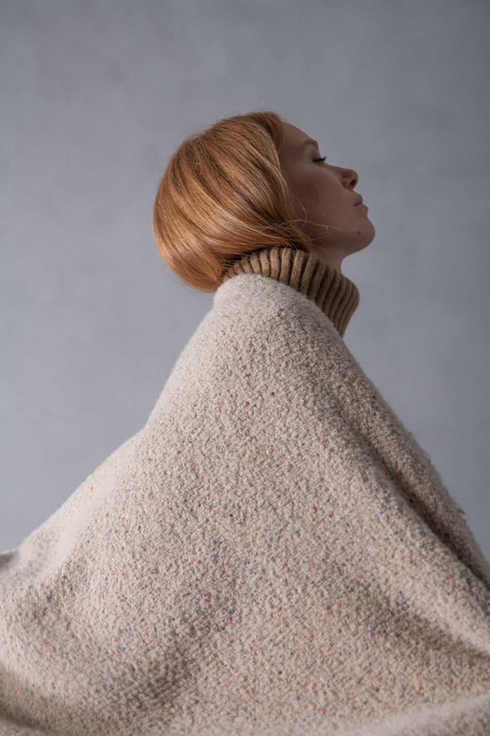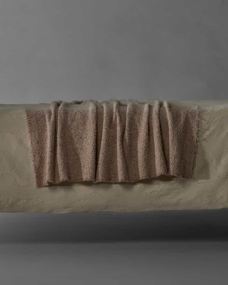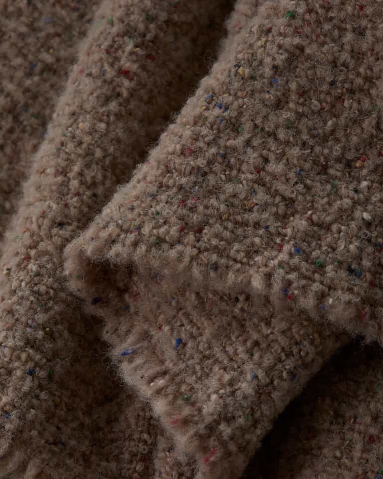 The Nicke Throw offers a dry, texturized feel with multicolored micro buttons on a solid background, blending casual style with knickerbocker-inspired charm. A wool and alpaca blend provides warmth, soft drape and lightweight comfort at 300 g/m², making it a practical, stylish addition for sofas or beds.