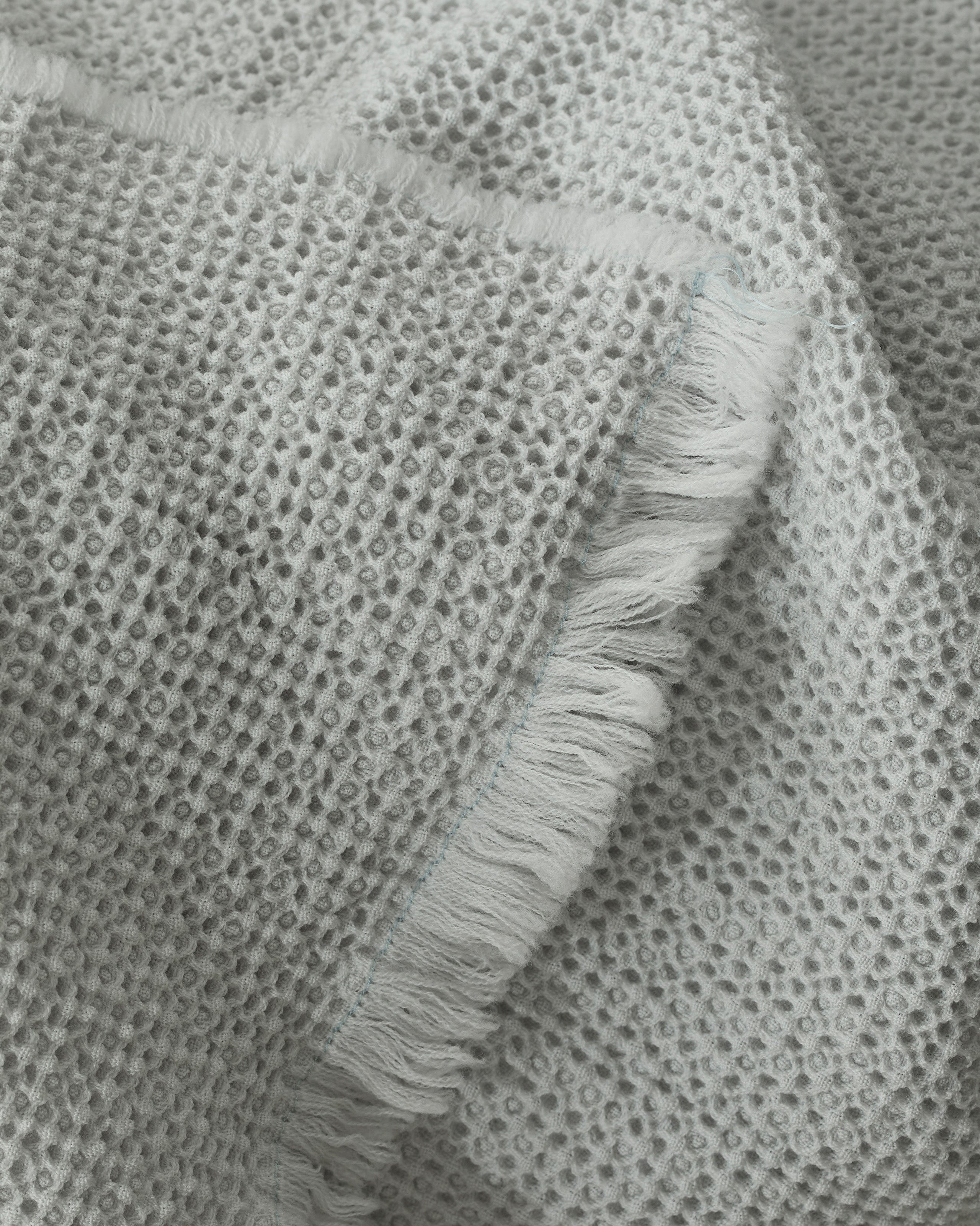 Nid Blanket is a classic design from Society Limonta. Pure wool is used in a waffle weave that creates a three-dimensional texture. The fabric is compact yet elastic, offering a tactile surface with warmth and lightness. Nid suits mid-season weather.