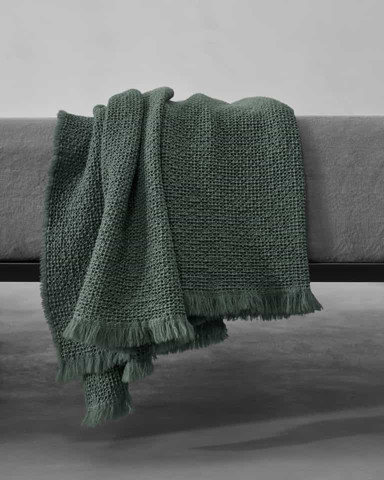 Nid Throw by Society Limonta blends waffle weave with wool to create a warm, elastic, and puffy throw for the home. It’s designed for the foot of the bed or relaxing on the sofa, with a light feel thanks to the waffle weave for milder winter nights. Available in seasonal and standard colors.