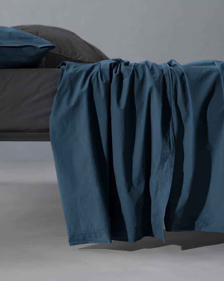 The Nite Flat Sheets from Society Limonta use an extremely smooth, thin and light cotton fabric (70 g/m²). This extra-fine cotton is known for its soft, resilient feel, offering a gentle, breathable embrace for a comfortable night’s sleep.