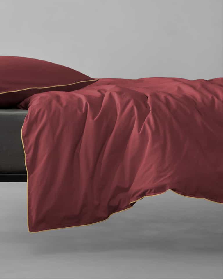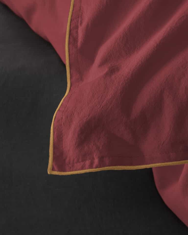 The Over Duvet Cover offers a blend of comfort and style, crafted from premium percale cotton for a soft and durable touch. Its chic garment-dyed design, featuring elegant contrasting overlock stitching, ensures a modern look and an airy sleep experience. Perfect for year-round use and easy to care for, this duvet cover will elevate the elegance of any bedroom.