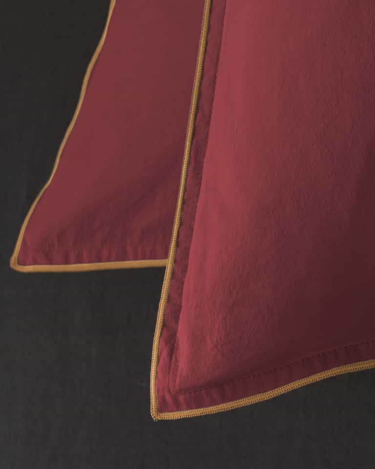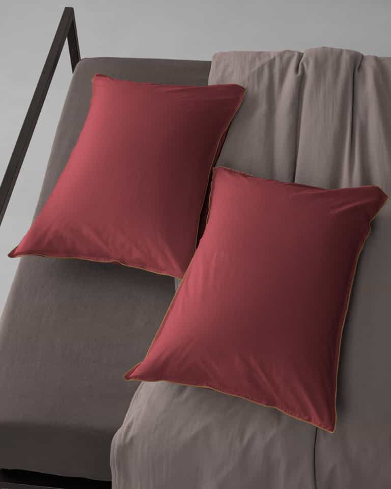 The Over Pillow Cases Set brings playful elegance to your bedroom with contrasting colored stitching. Made from soft, garment-dyed percale cotton, these pillowcases have a natural look that highlights the fabric’s quality.