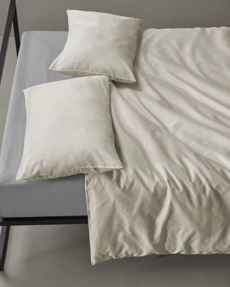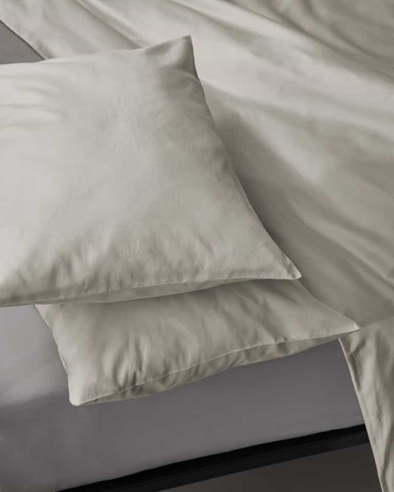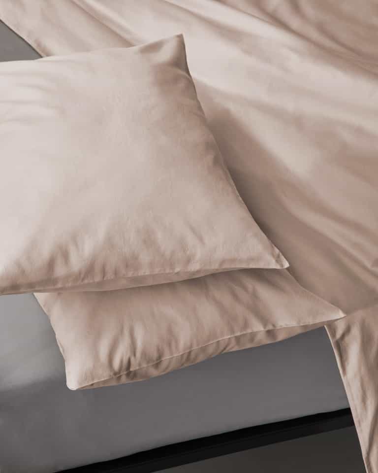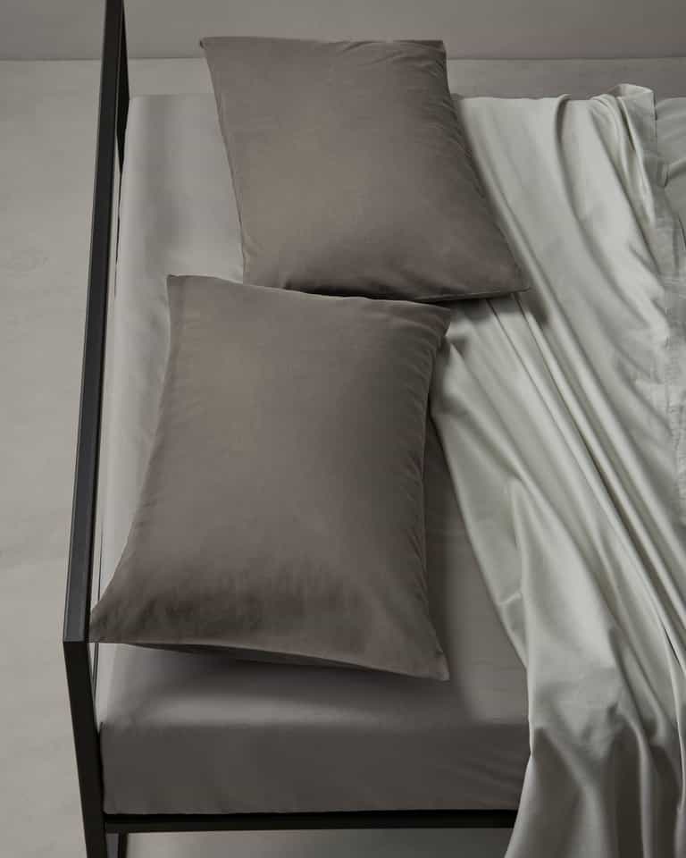 PEACH pillow cases, in emerized sateen cotton, add a velvety touch to the bed. Made from pure cotton, PEACH pillow cases reveal a barely perceptible lustre created by fabric processing. A soft touch for winter beds that pairs well with other materials and the prints in the collection.