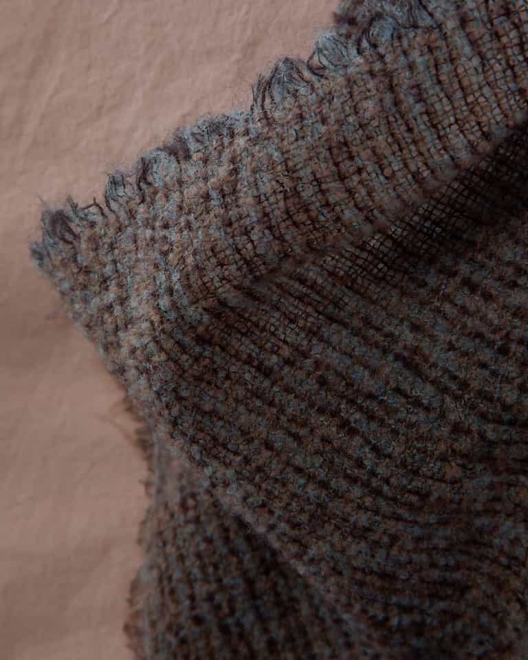 PHIL is a yarn-dyed wool throw with a pattern of thin stripes, which gives a bi-colour look. Dry to the touch and cosy, this throw is warm and comfortable. The bouclé finishing becomes tri-dimensional when matched with other colours.