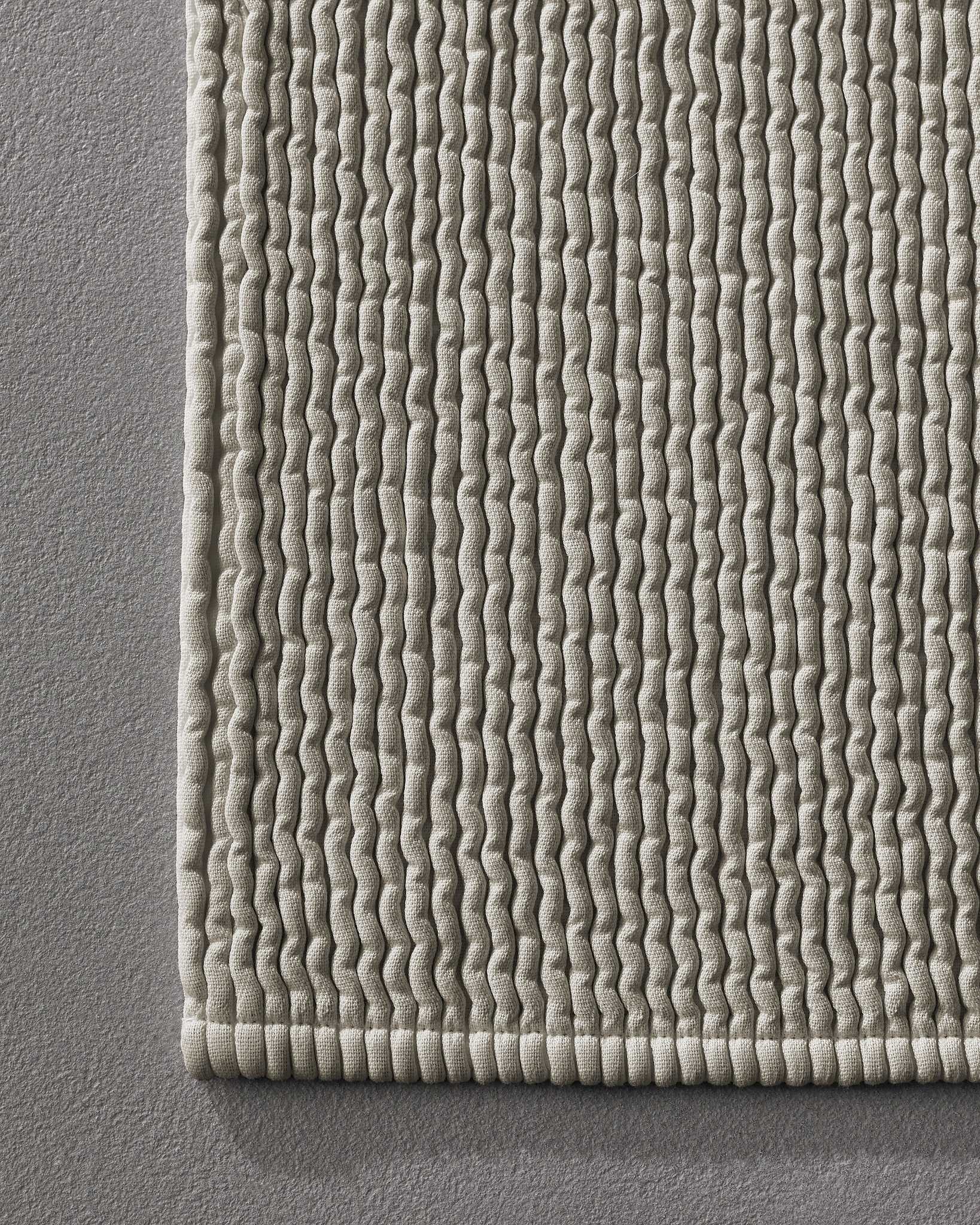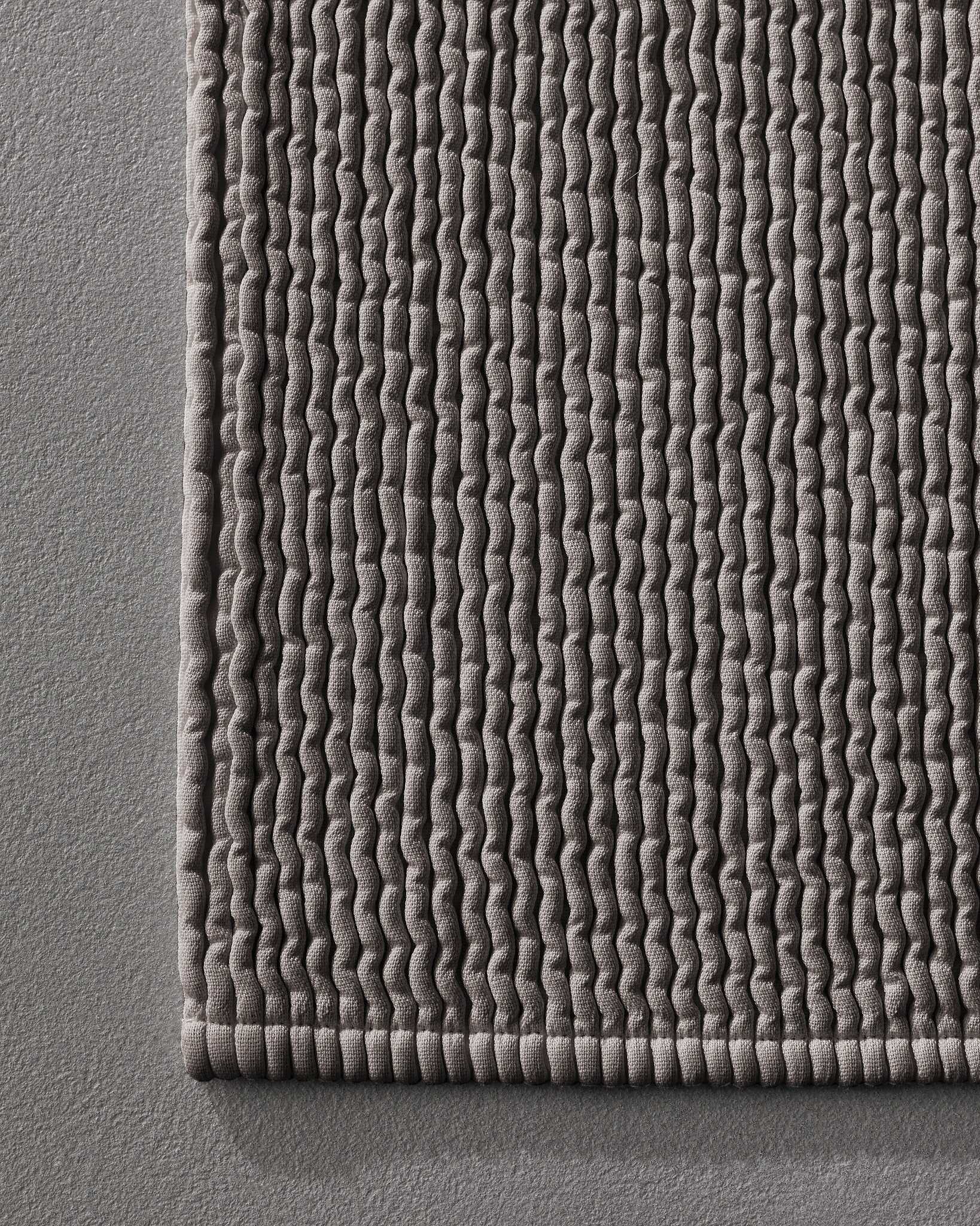 Pliss Bath Mat features a thick, three-dimensional plissé texture woven directly on the loom, delivering a soft, fluffy feel that is durable for daily use. Versatile enough for bathroom or bedroom styling, it comes in colors that pair with Limonta Society collections to add warmth and texture to any space.