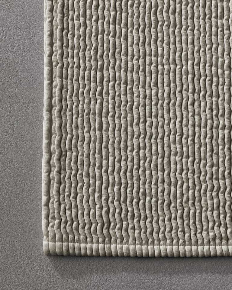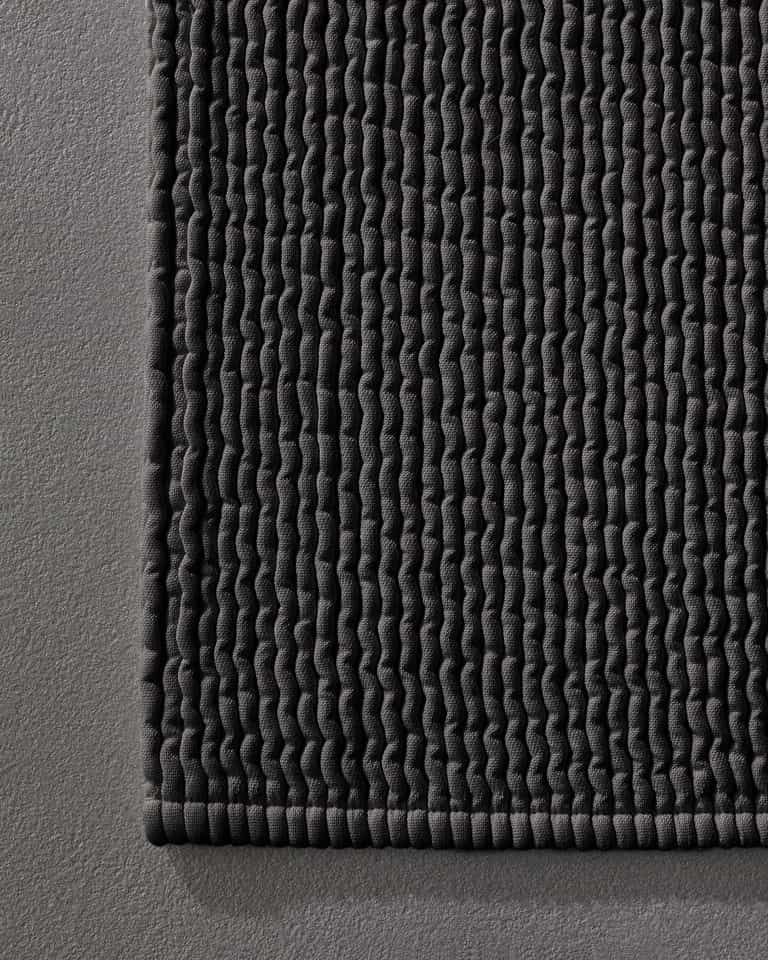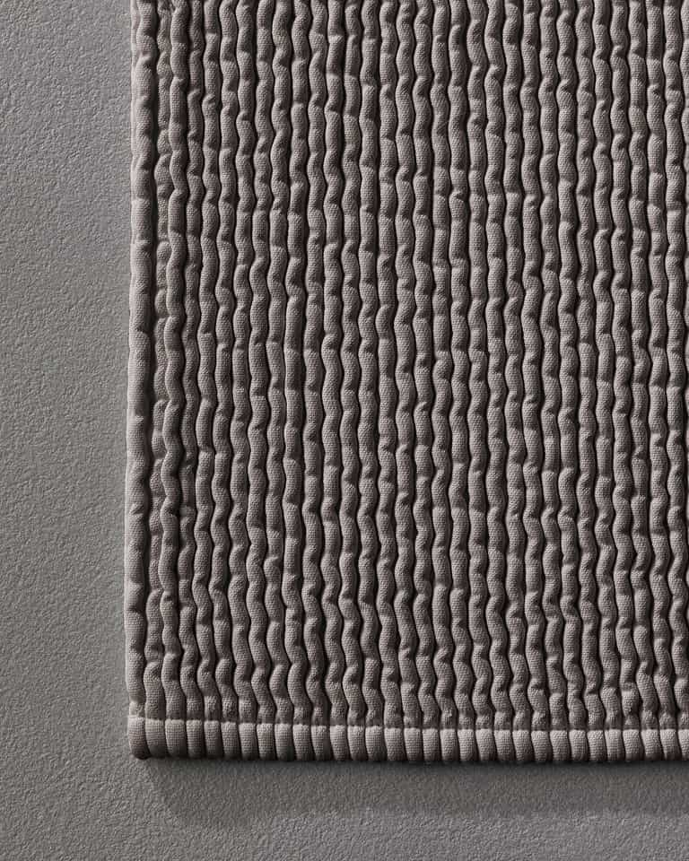 The Pliss Bath Mat uses a loom-made plissé technique to create a thick, three-dimensional surface. It is soft and fluffy, yet highly durable.