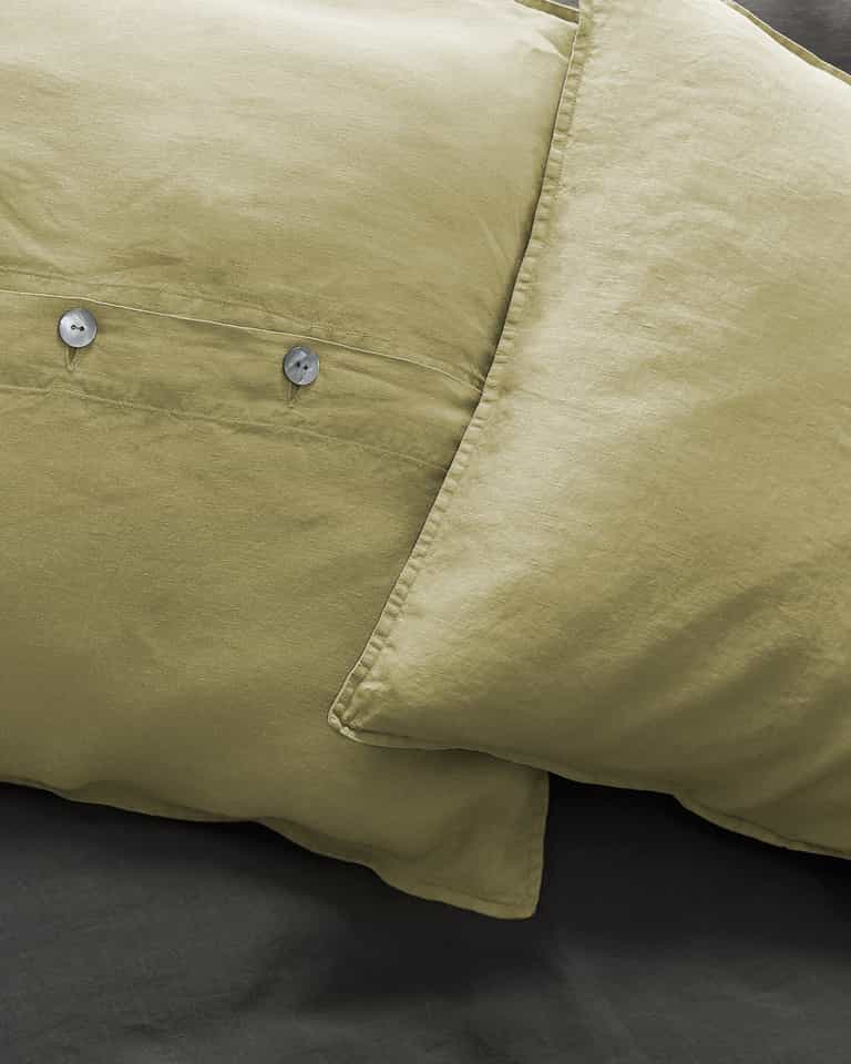 Rem Cushions Set adds a classic, cozy touch to living spaces and bedrooms with froissé linen, a soft, textured fabric that preserves its natural character through garment dye. Key features include 100% Linen, Machine Washable, Mother-of-Pearl Buttons, a Color Range, and decorative use for any room.