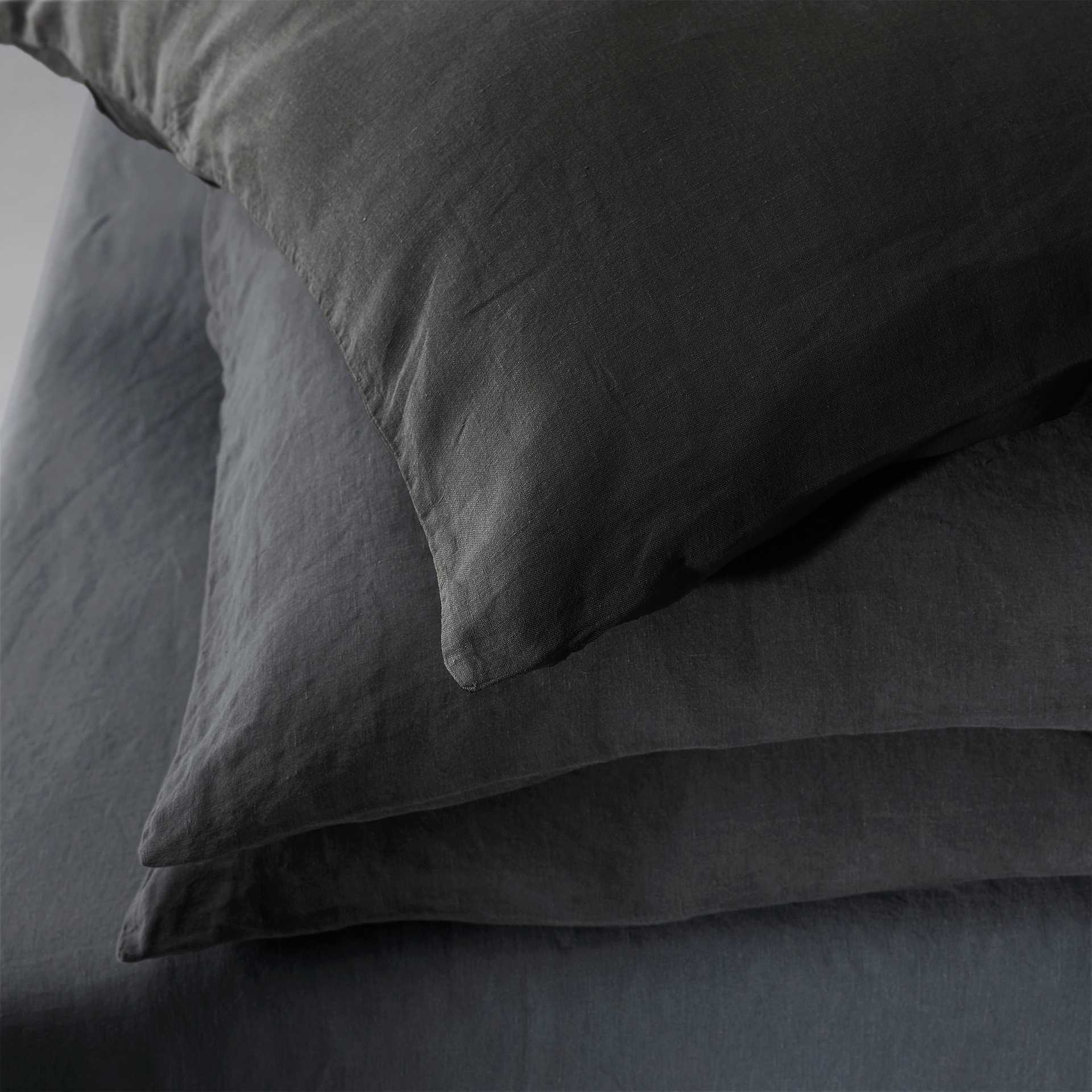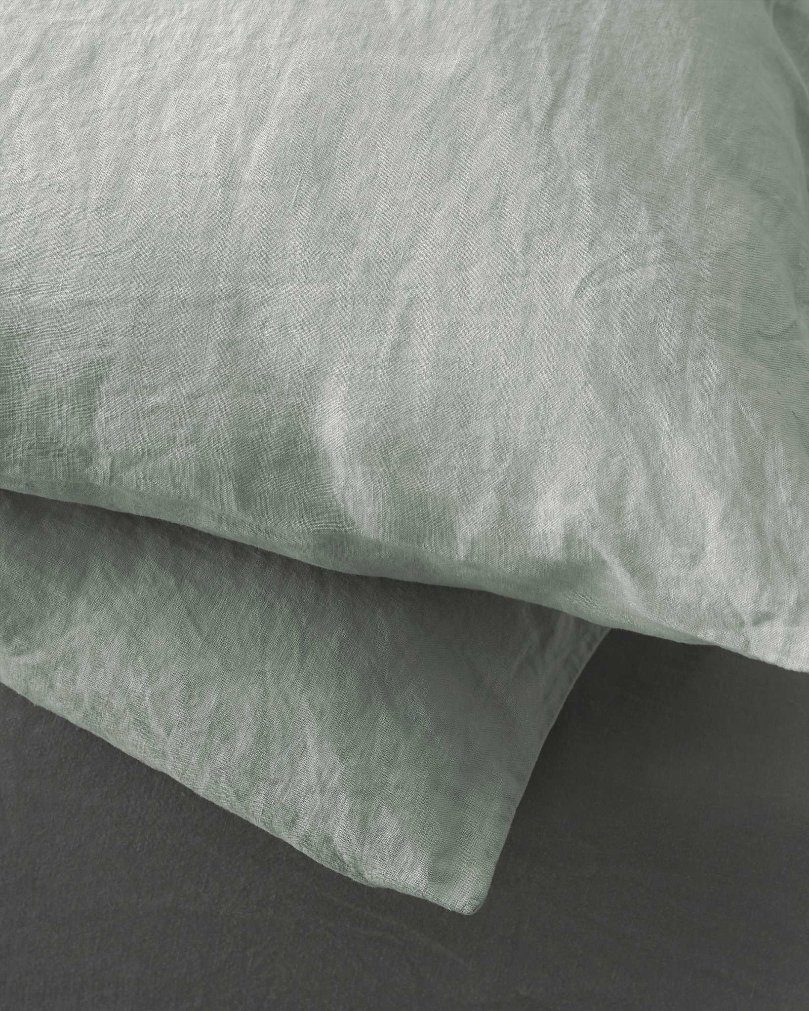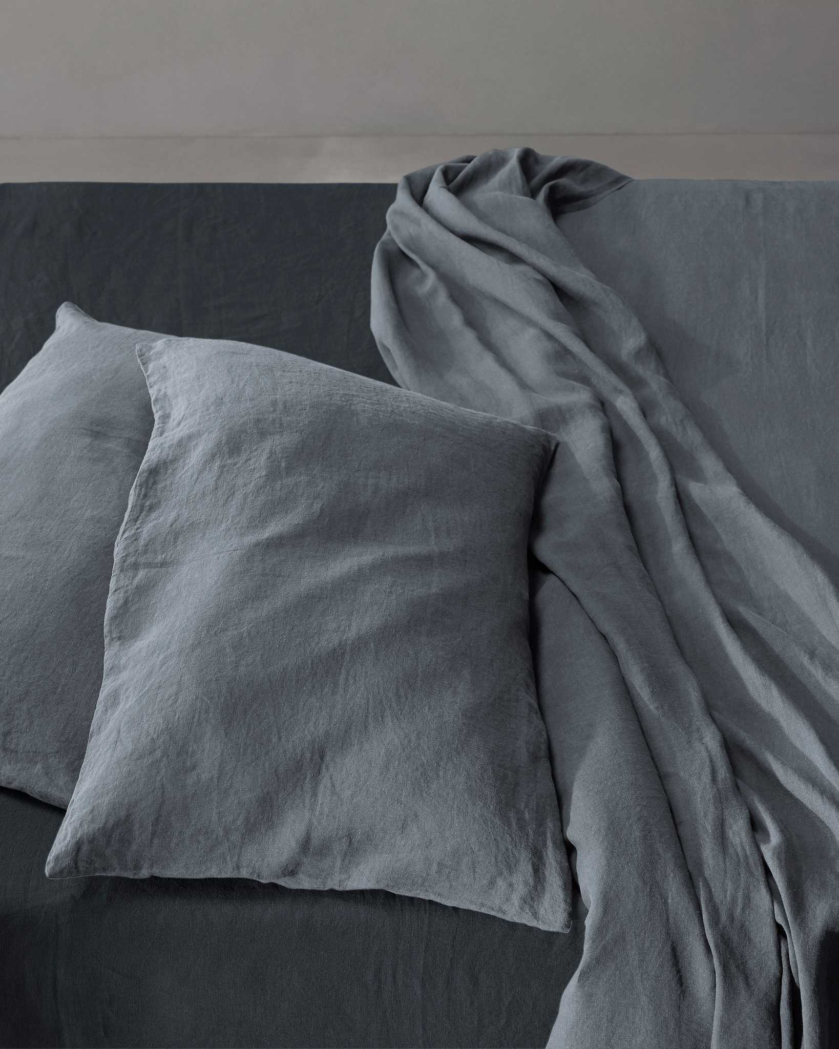 Rem Pillow Cases Set from Society Limonta features froissé linen—a soft, textured take on the classic linen look. The fabric is hypoallergenic and thermo-regulating, helping to stay cool in summer and warm in winter.