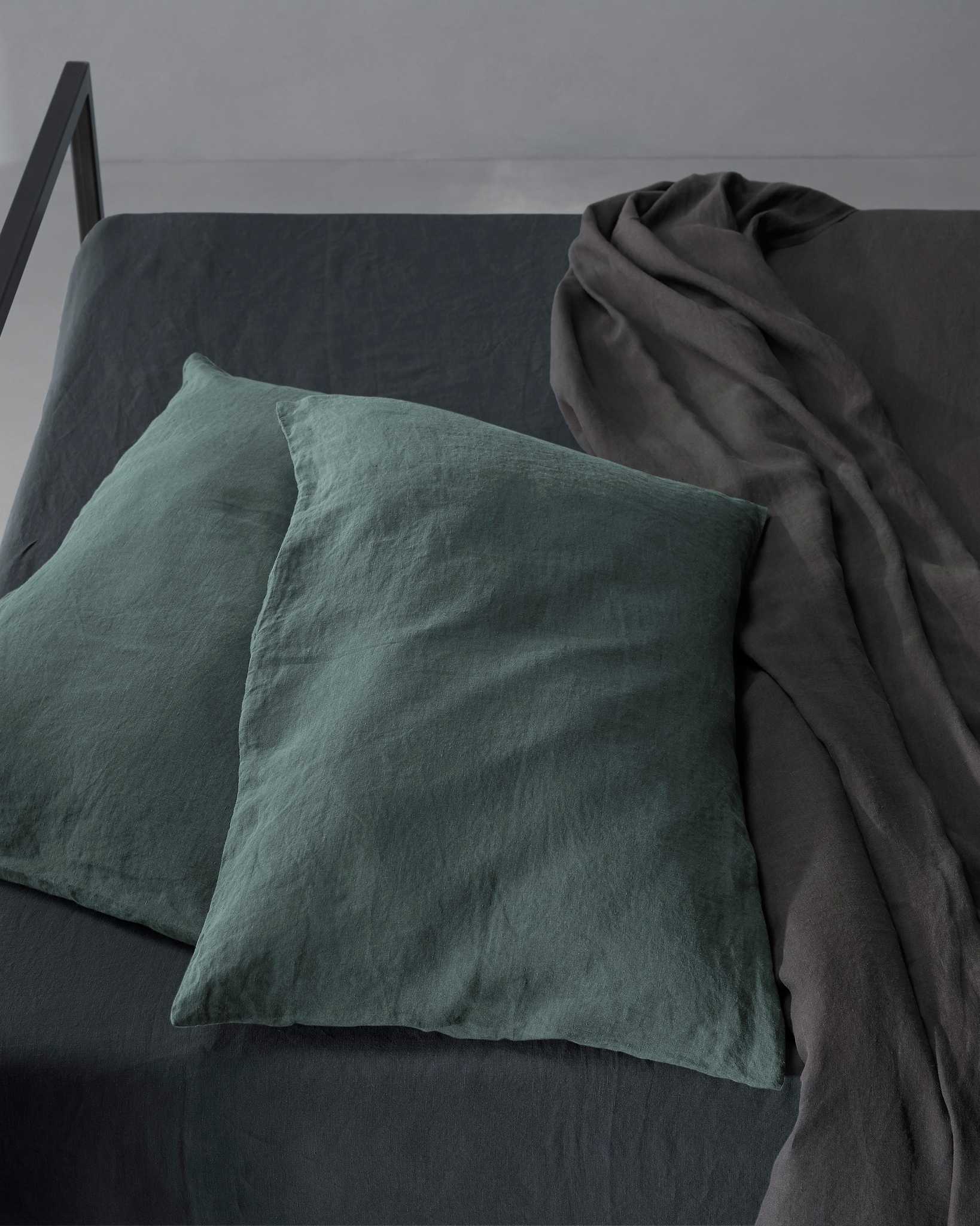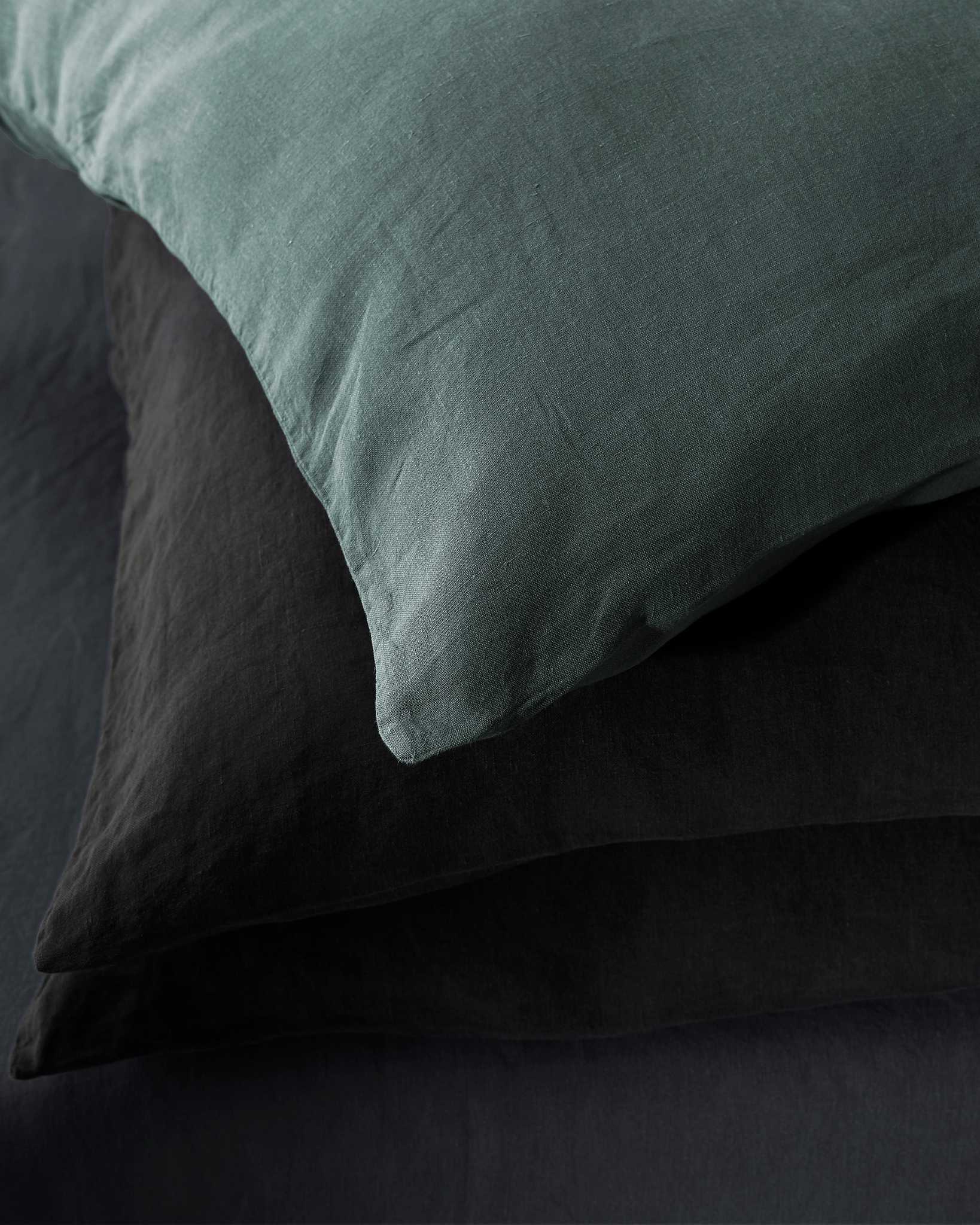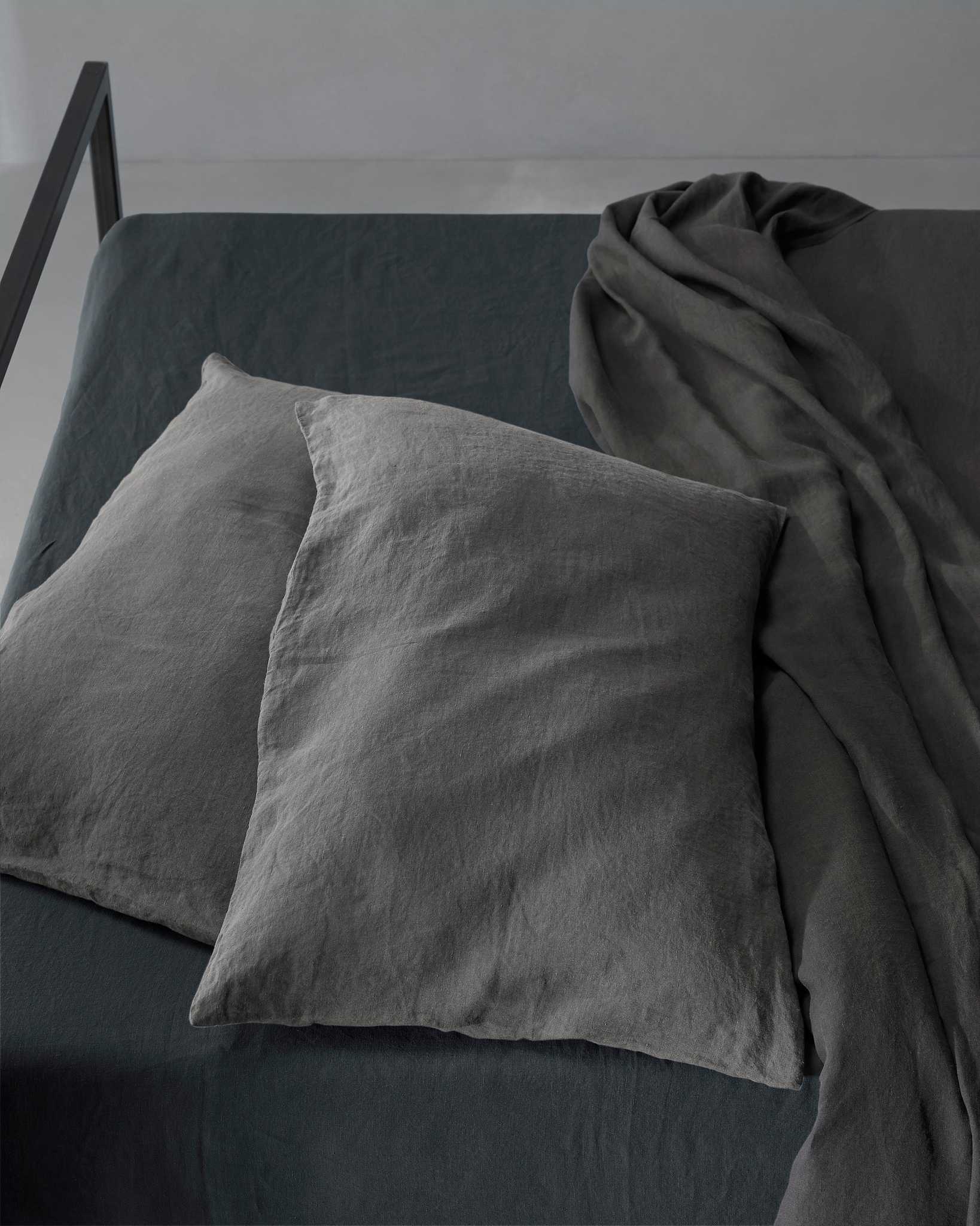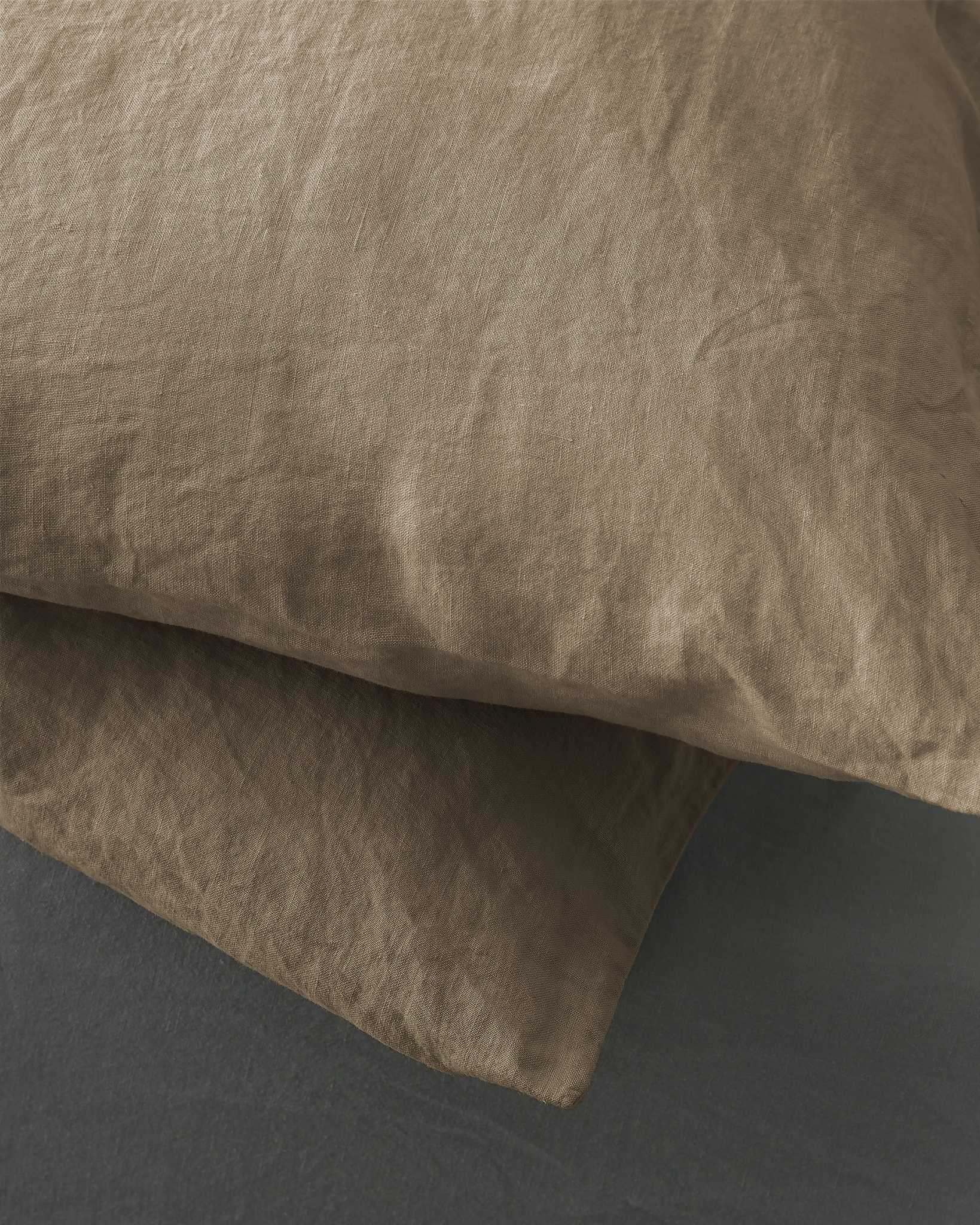 Rem Pillow Cases Set from Society Limonta features froissé linen—a soft, textured take on the classic linen look. The fabric is hypoallergenic and thermo-regulating, helping to stay cool in summer and warm in winter.