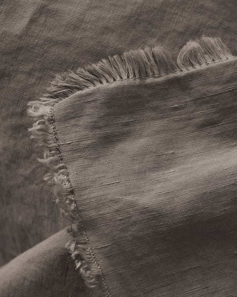 The Saten Bed Sheet blends cotton and linen satin for a soft, two-sided texture: a semi-shiny, silky side and a dry, matte linen side, finished with a fringe border for a fresh summer look. Weighing about 130 g/m² and machine washable, it offers easy care and a light yet durable feel that brings modern style to the bed.