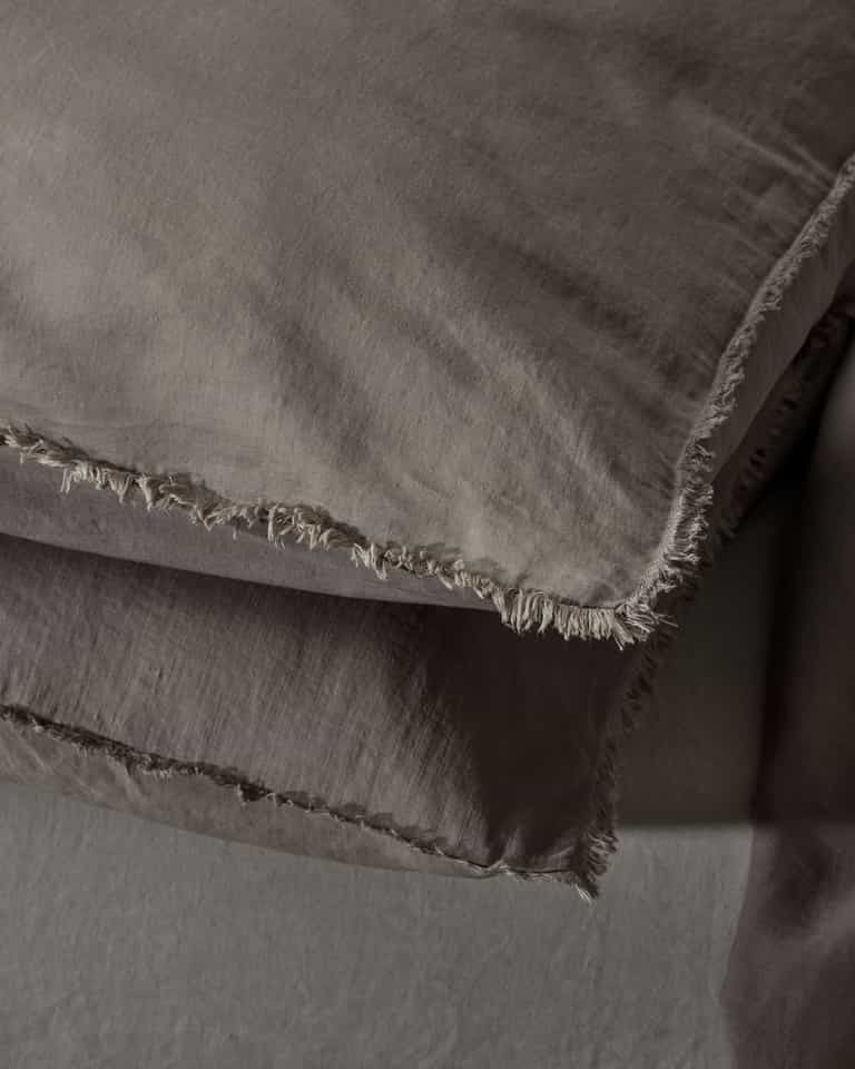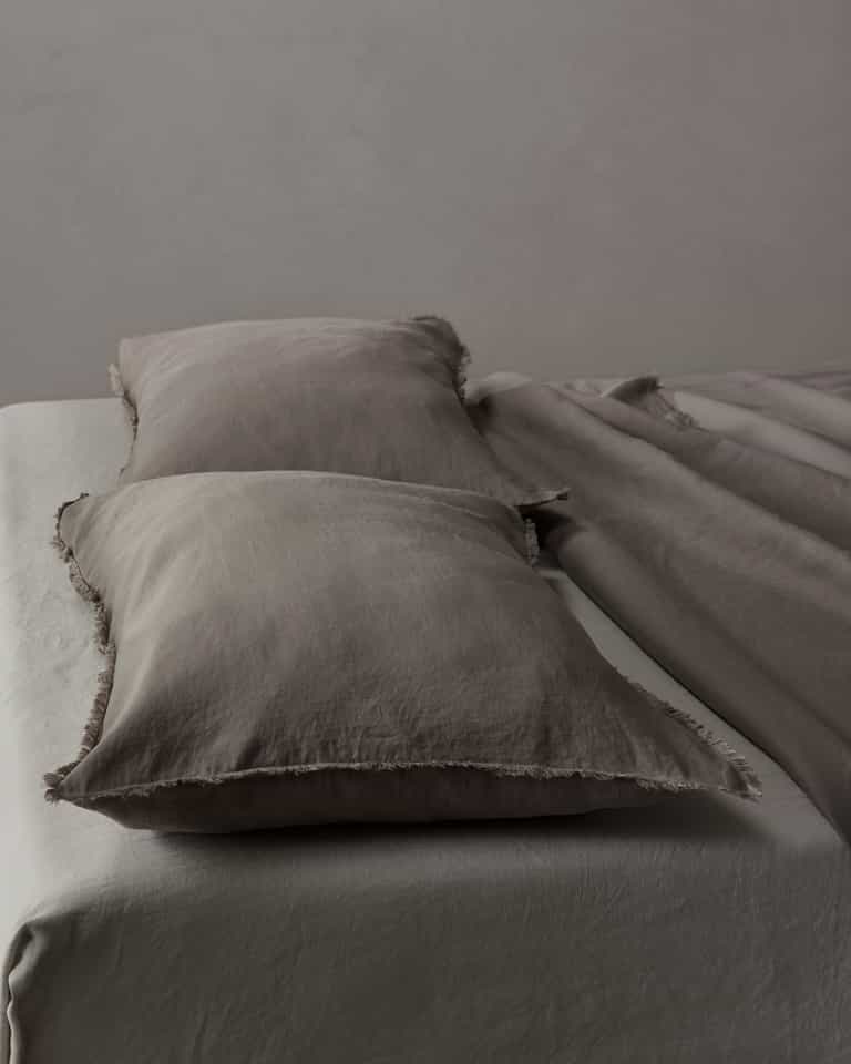 The Saten Pillow Cases Set offers a refined touch with a two-face texture in a linen and cotton satin blend, finished with a fringed border. One side is soft and silky for comfortable nights, while the reverse has a linen-like, matte finish for a natural look.