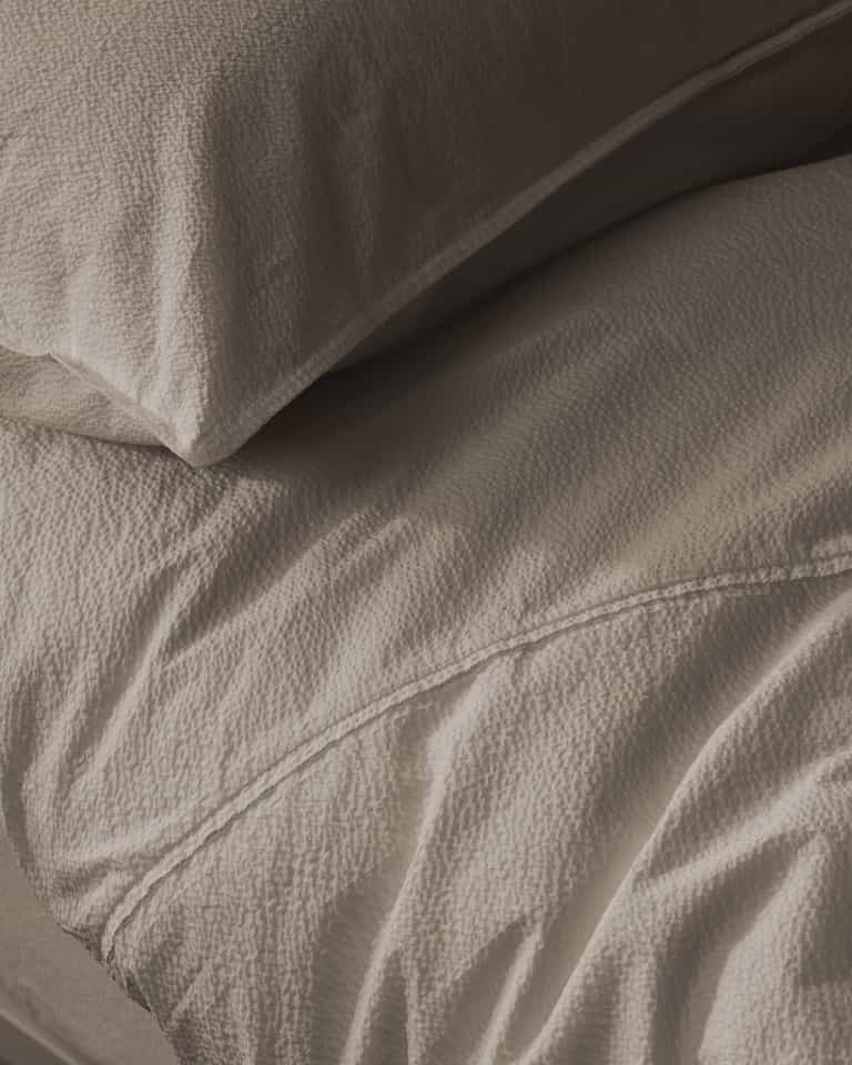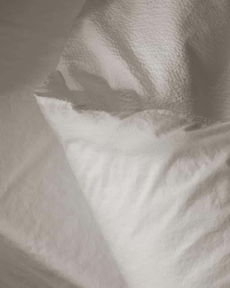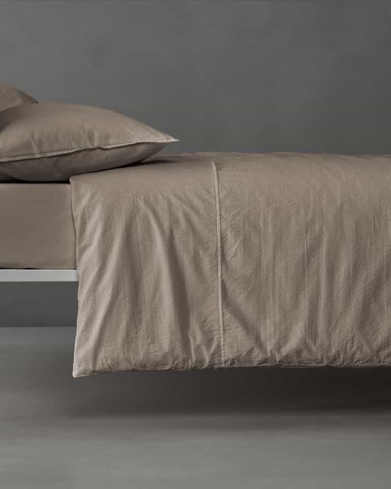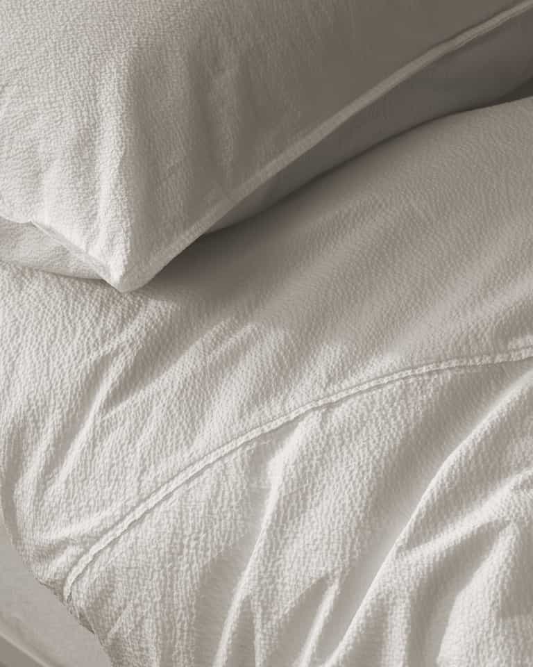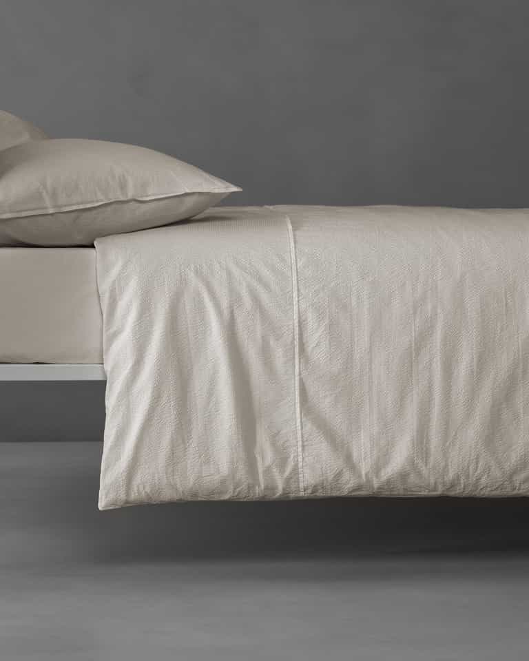 The Sire Duvet Cover brings texture and a fresh look to the bed. Crafted from 100% cotton, the puckered weave echoes a seersucker technique for a crisp touch. Available only in optical white, it pairs well with blankets in warmer whites.