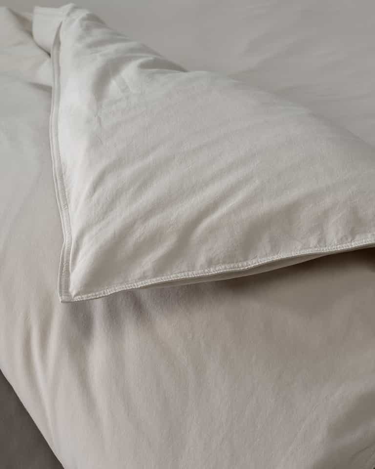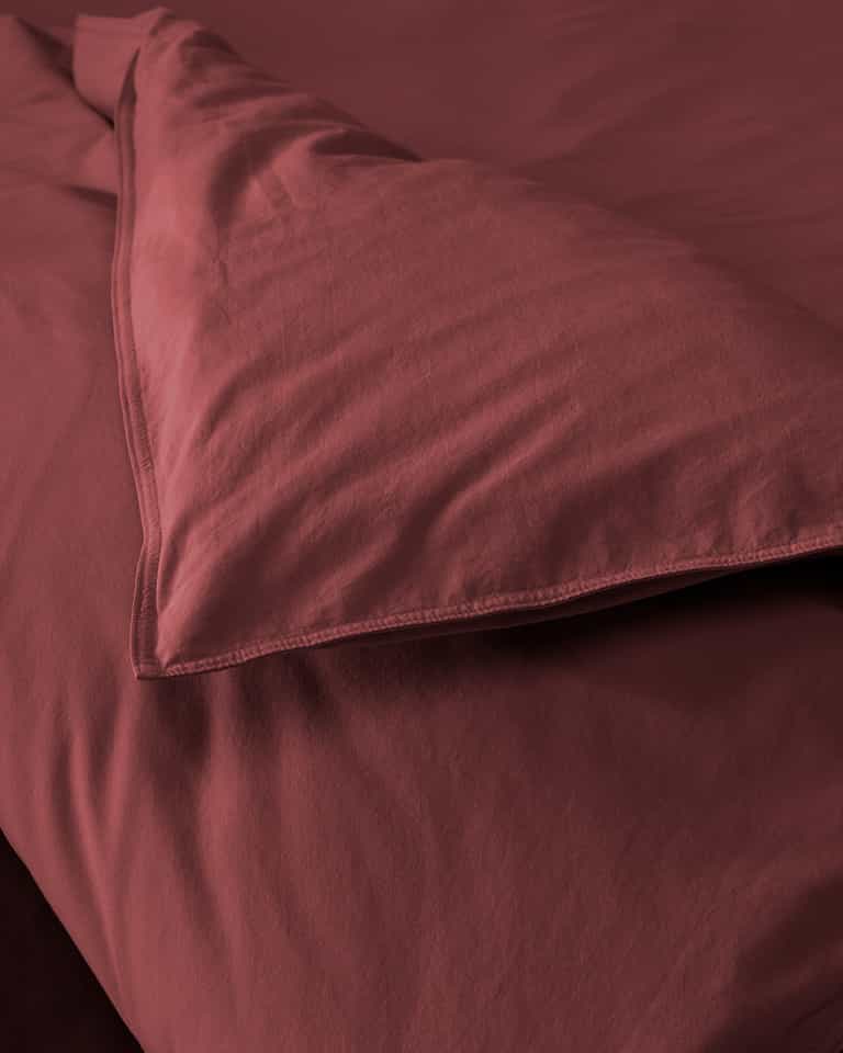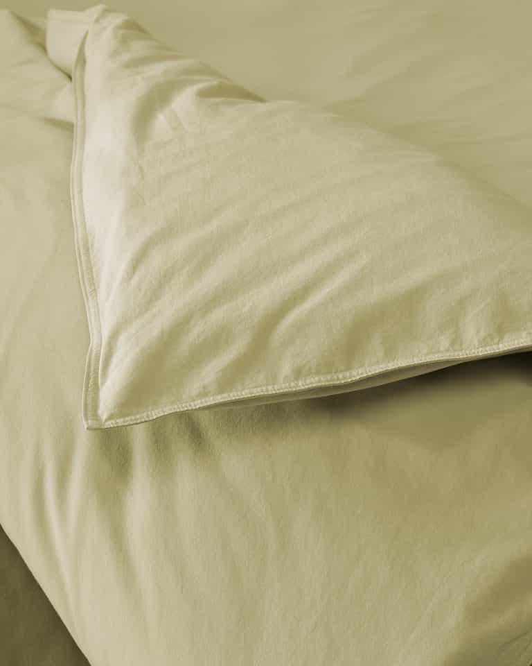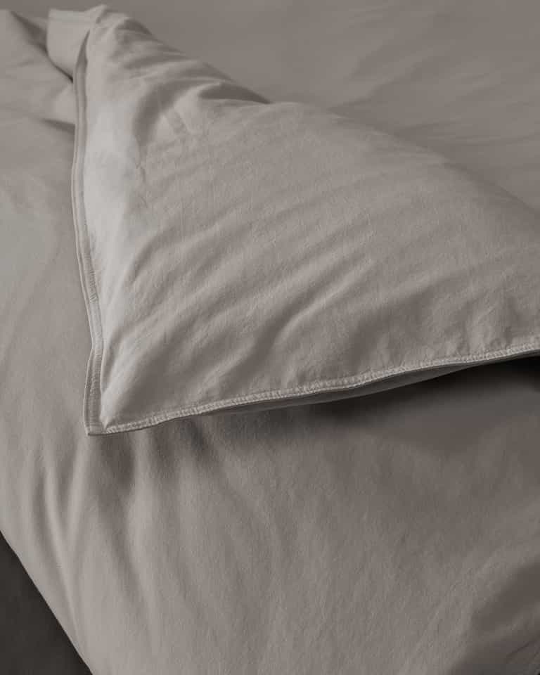 TALE is a duvet cover in 100% cotton percale with garment-dyed colours that add depth and a textured, cosy look. With a crisp, breathable weave and a soft, comfortable feel at 130 g/m², it pairs easily with solid or printed pillowcases for versatile styling.