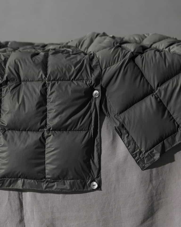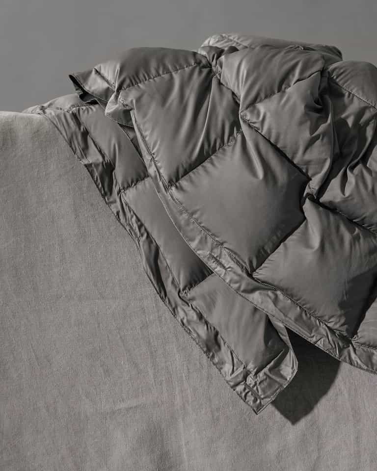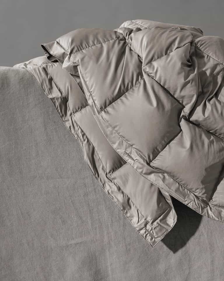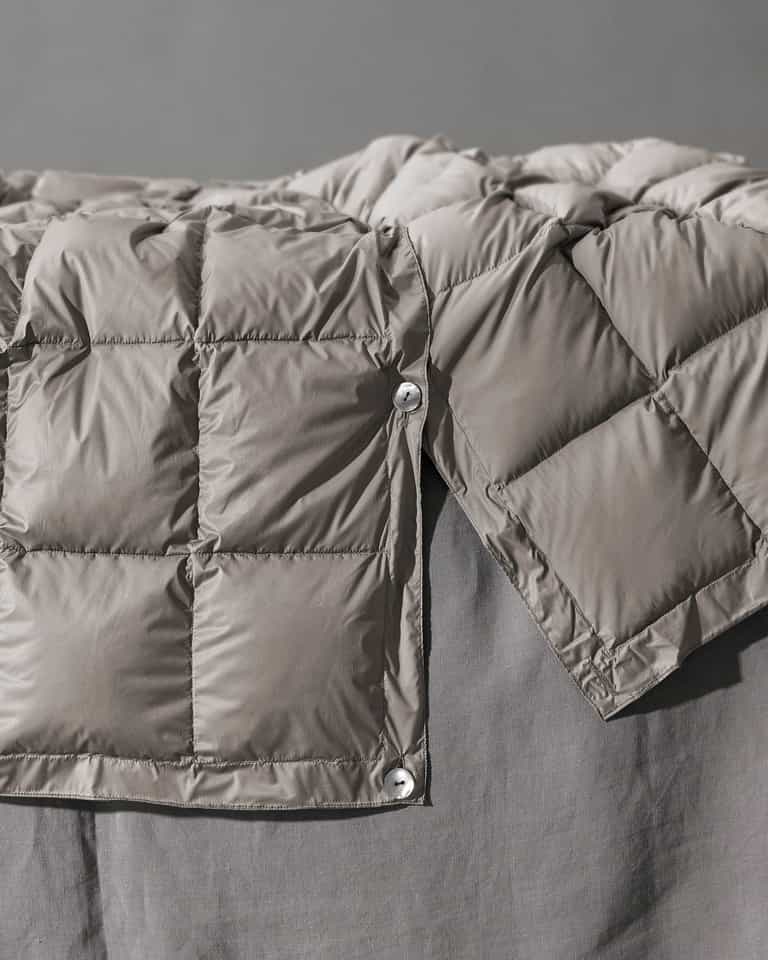 The Talk Quilt is a light, soft quilt that feels like a cosy cloud, filled with 100% Siberian White Goose feather and a high-tech fabric for a smooth, talcum-powder touch. Lightweight warmth, soft loft, and buttons on all four sides for easy joining with other layers add versatility for use as an extra layer or as a sleeping bag, from Society Limonta.