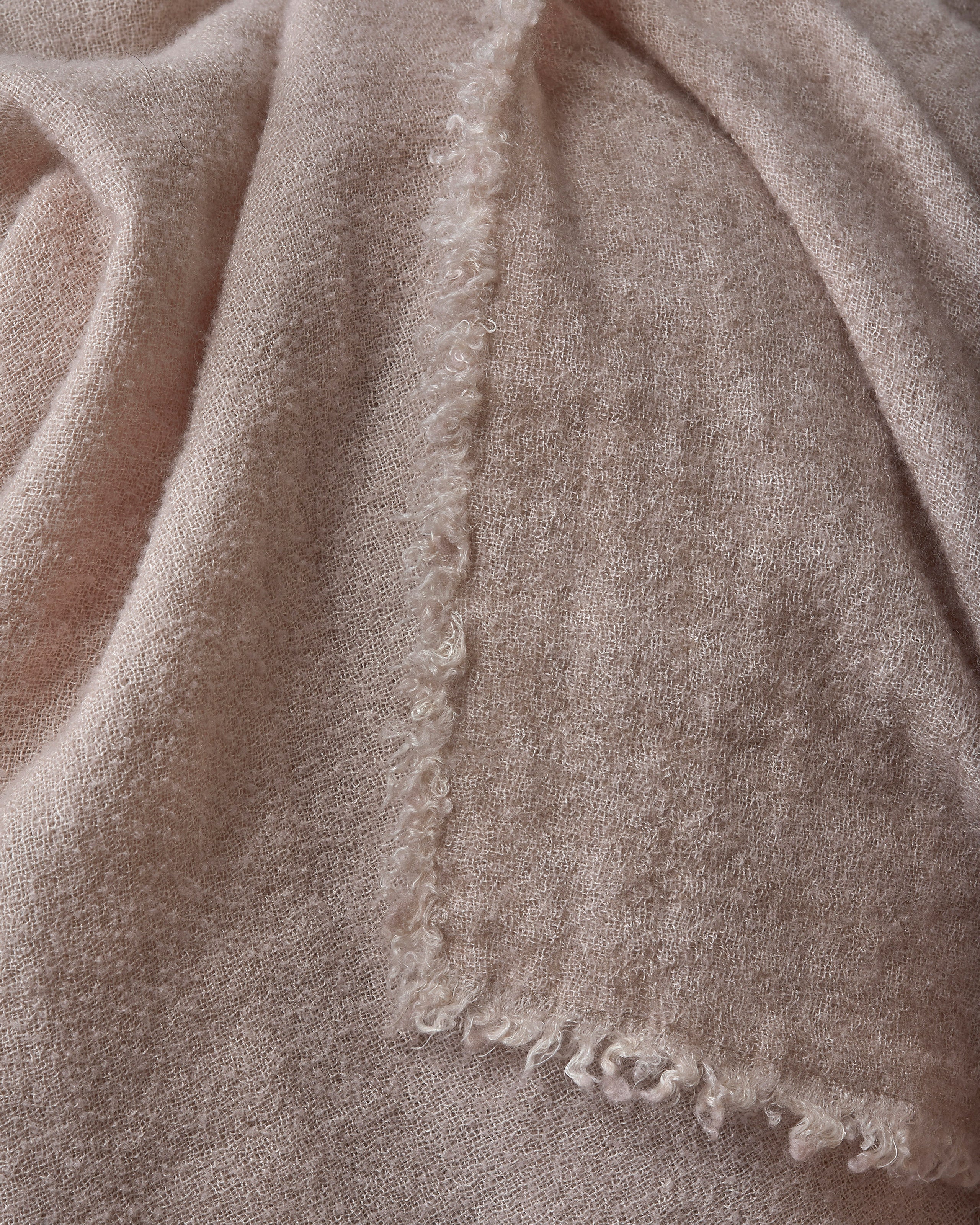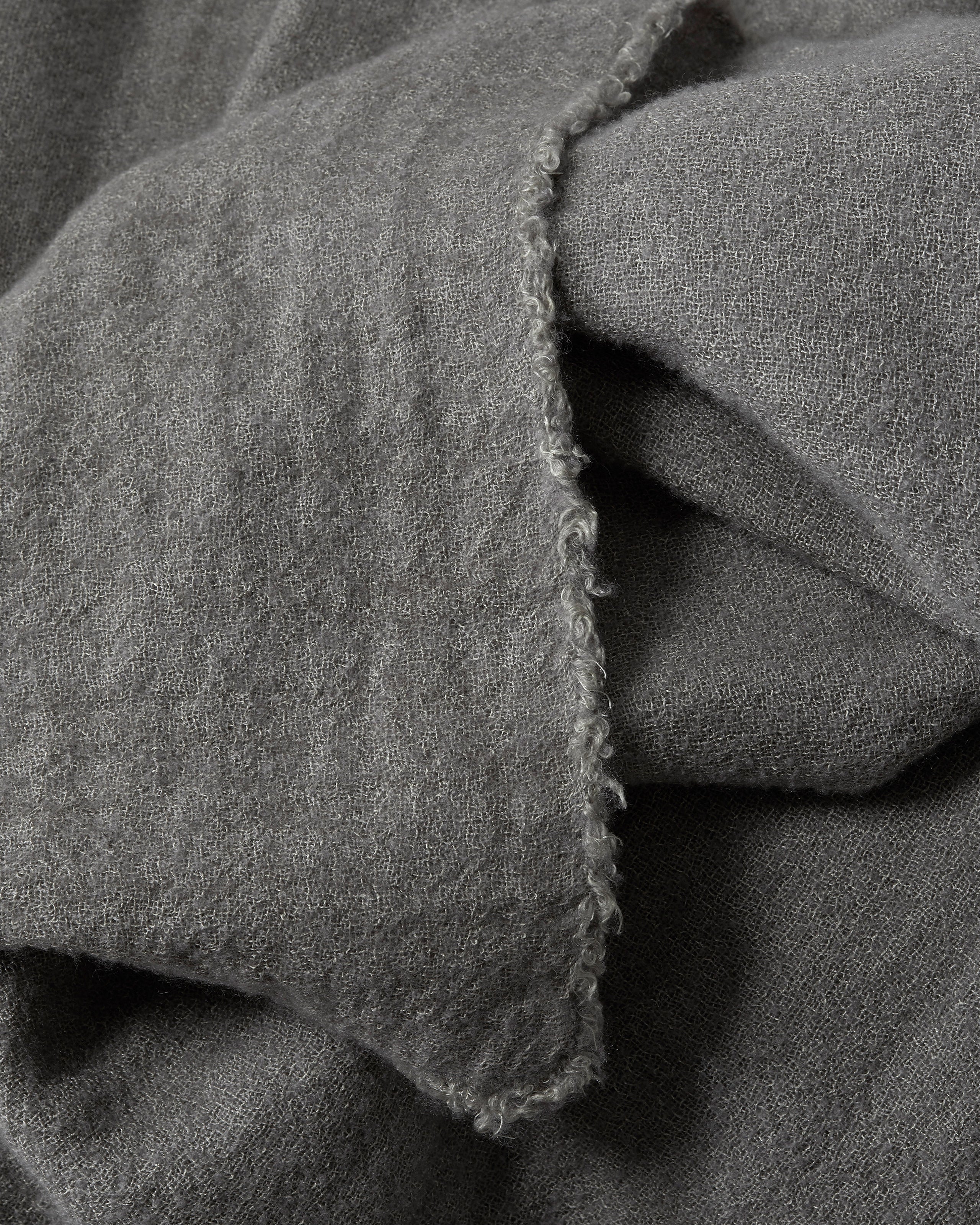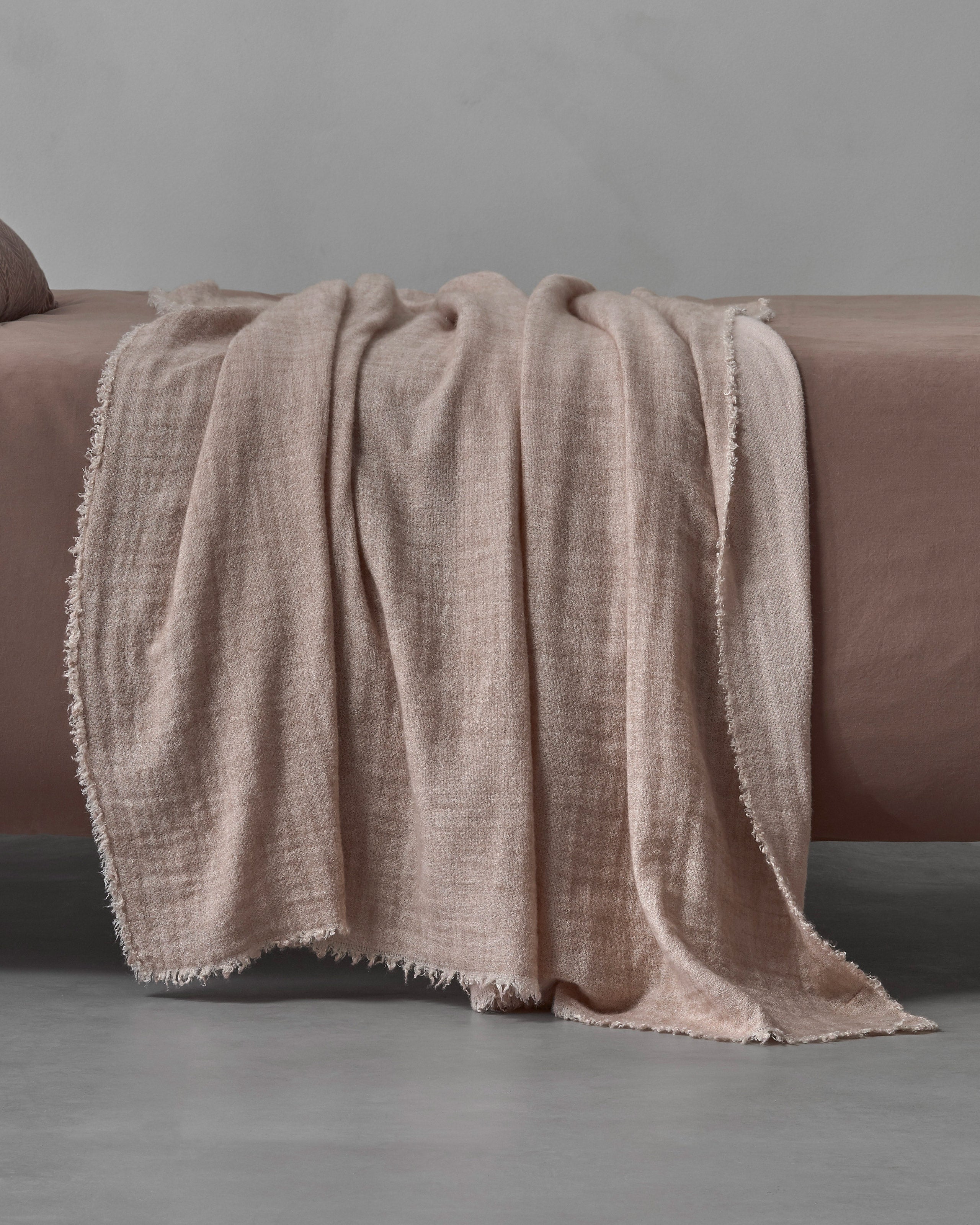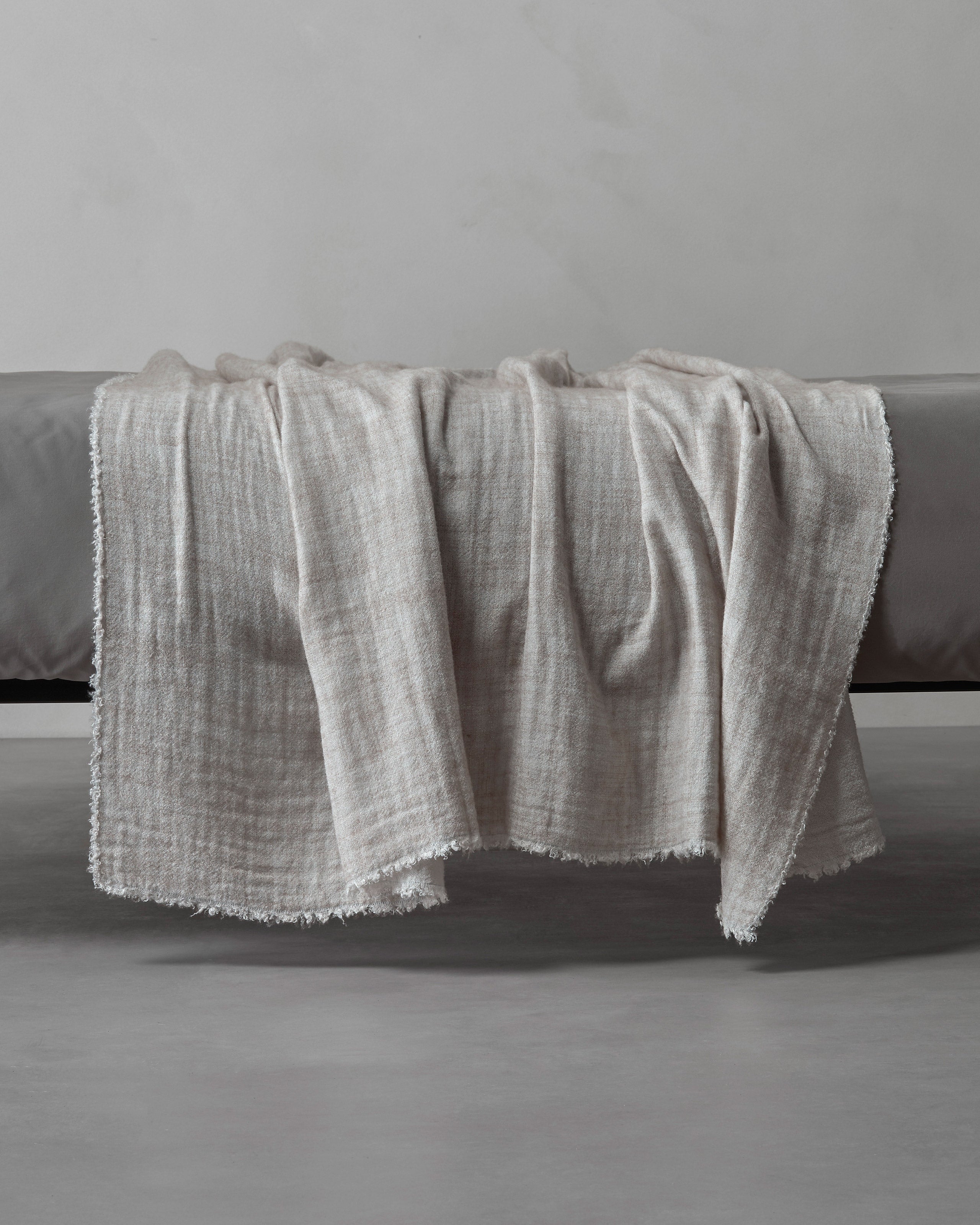 Tiub is an extra-light double-faced throw in cashmere and silk, with one side in a solid colour and the other with a melange effect. A warm and cosy hug, perfect to be used on the bed or on the sofa.